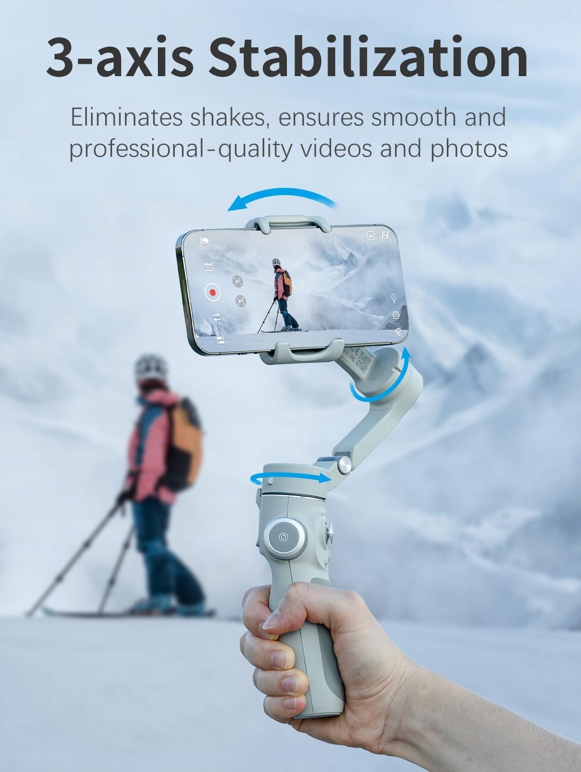 - Легкий, портативный и складной — стабилизатор для мобильного телефона Vimble 4 компактен и легок, его вес составляет всего 335 г, и его можно легко хранить в кармане, поэтому вы можете брать его с собой куда угодно.