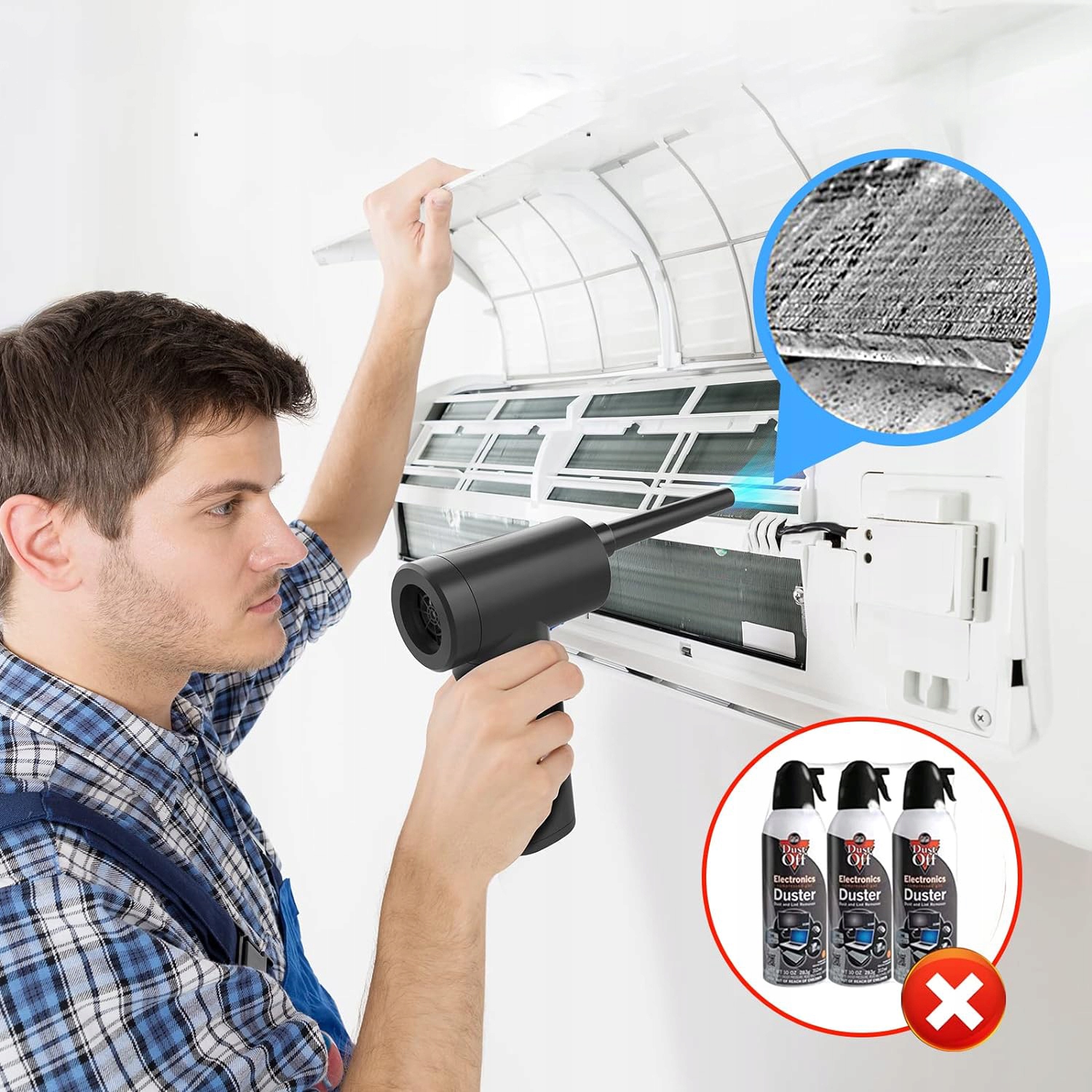 Ощутите мгновенную чистоту с новым усовершенствованным пылесосом со сжатым воздухом от Aukire, который удаляет 99% пыли всего за 1 секунду. Благодаря мощному двигателю электрический пылесборник с максимальной скоростью 110 000 об/мин очищает каждый уголок. Пылесос Aukire – отличный артефакт для уборки, который является хорошей заменой баллончика со сжатым воздухом.