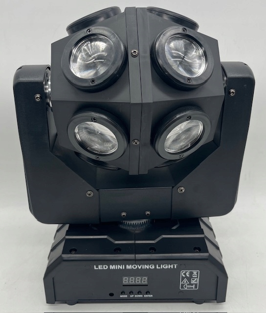 Бесконечное вращение. Головку лампы можно вращать в горизонтальном и вертикальном направлениях, при этом угол поворота по горизонтали достигает 540 градусов, а вертикальное направление не ограничено и может вращаться бесконечно. Скорость вращения можно регулировать. Сочетание двенадцатинаправленных лучей и постоянно вращающейся головки способно осветить каждый уголок вашей вечеринки.