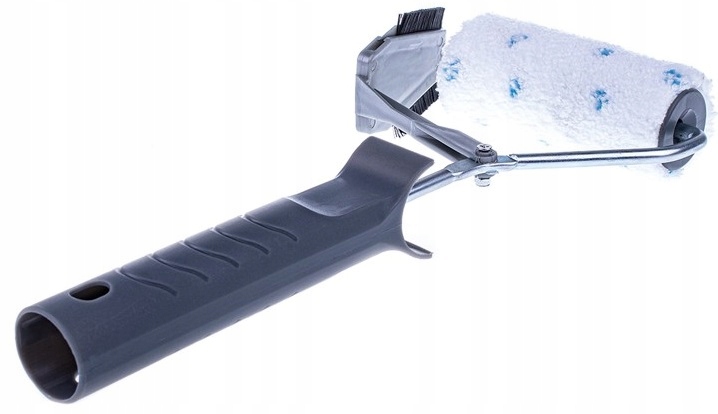 - благодаря использованию ограничителя позволяет красить срезом в виде ровной линии, направляя валик по углам стен и потолков