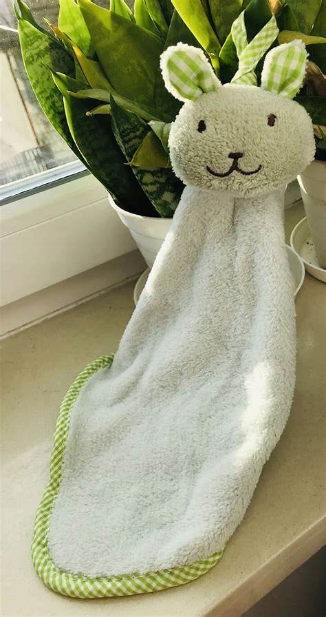 Очаровательное полотенце ПОЛОТЕНЦЕ с подвеской и зайчиком, подойдет для детского сада.