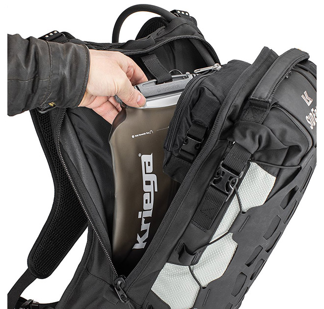 Содержит такое же надежное сочетание11 литров водонепроницаемой рулонной поверхности - сверху, соединенной с задним отделением, которое предназначено для размещения пузыря с водой емкостью 3,75 литра, инструментов или более.