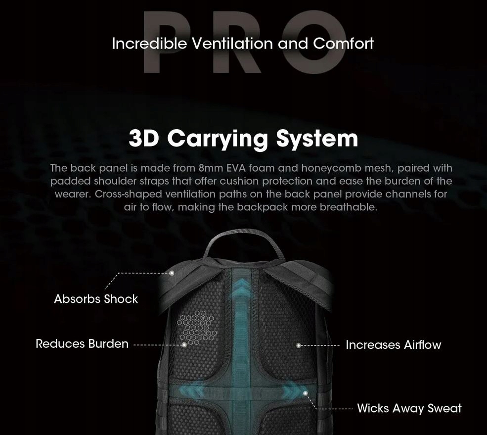 - Вентиляционная система и трехмерная система ношения из 8 мм пены EVA с сотовой структурой