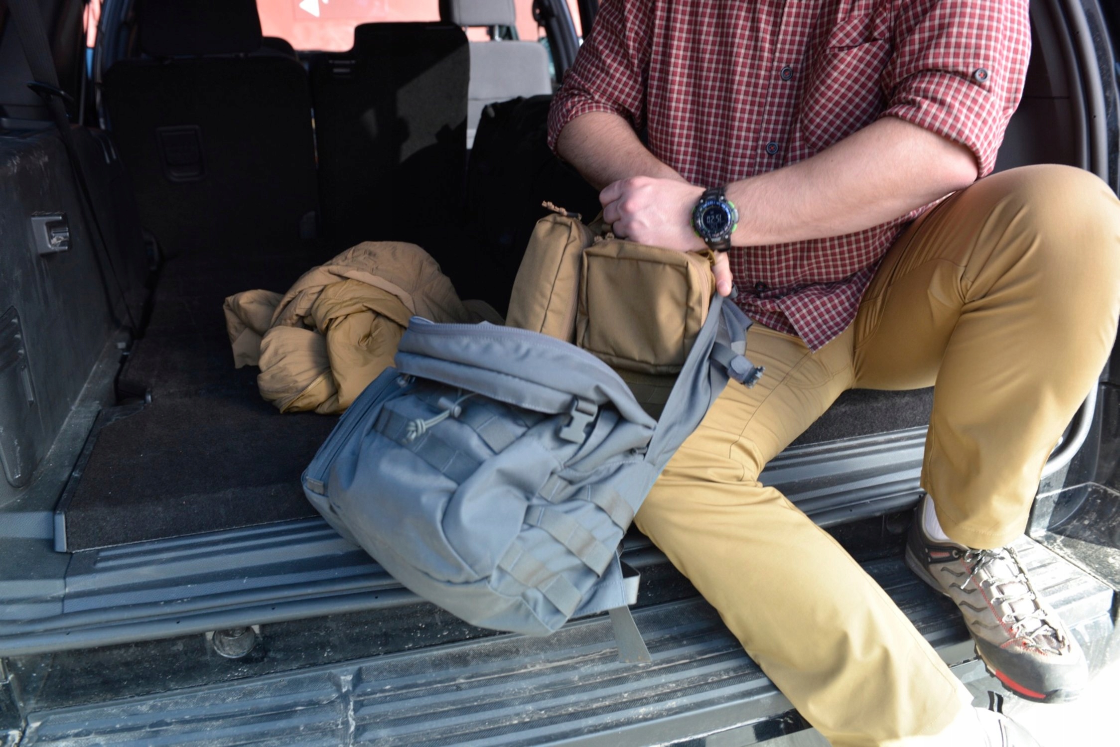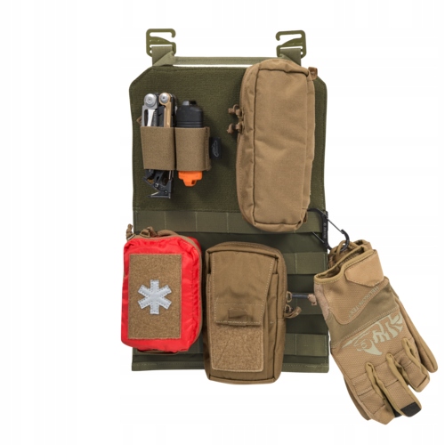 С одной стороны панели расположен сетчатый карман на молнии YKK, а снизу открытый карман на эластичной кулиске. С другой стороны находится большая панель, липучка и лямка системы MOLLE/PALS. Использование липучек и ленты позволяет крепить дополнительное снаряжение в виде подсумков и контейнеров.