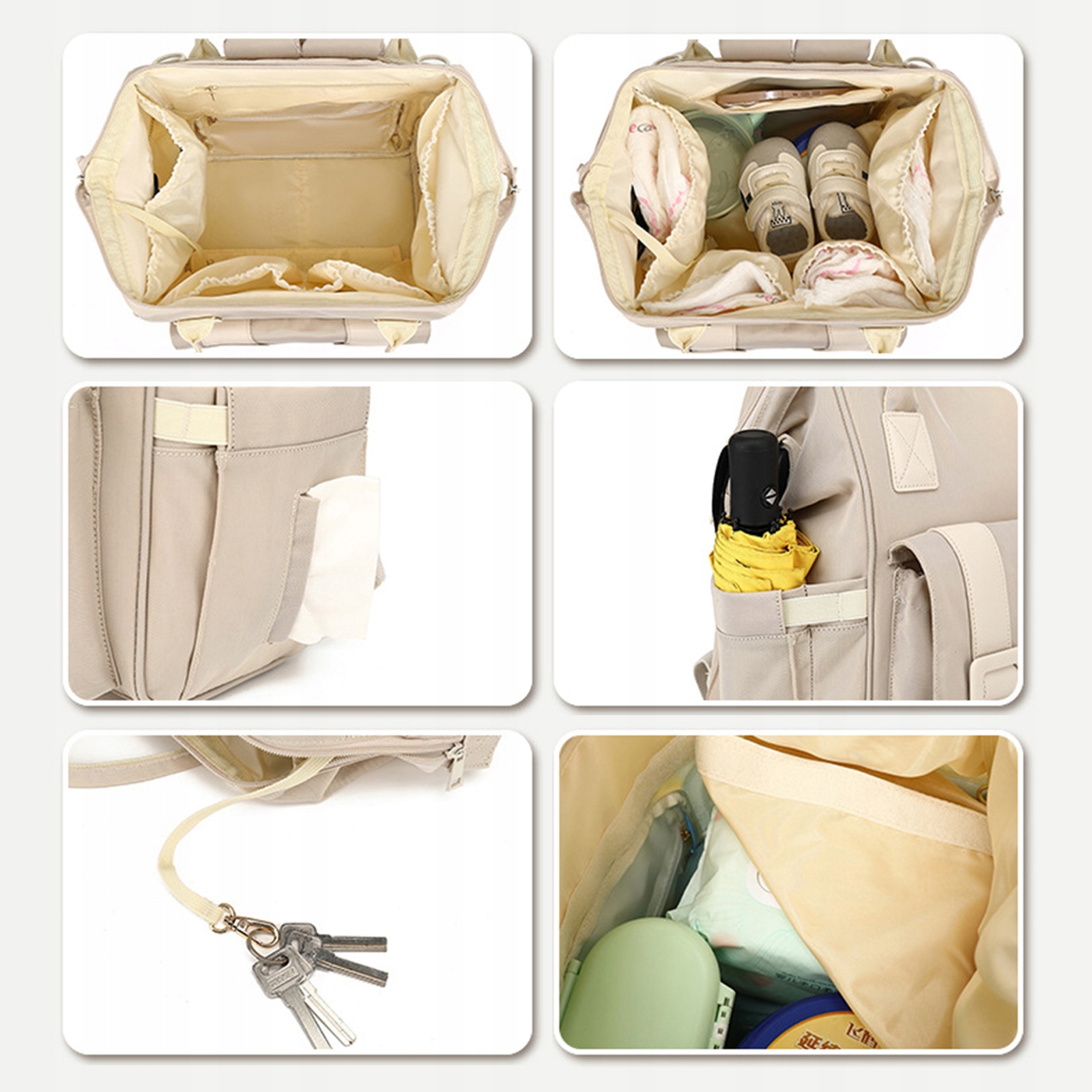 - 🍼【 Портативный рюкзак】 этот рюкзак можно носить на одном плече, на двух руках или в руке, чтобы удовлетворить различные потребности матерей в различных случаях. Существует также порт зарядки USB, который обеспечивает удобную зарядку мобильного телефона. Если коляска толкается, сумка матери может быть безопасно повесить в инвалидной коляске, используя соединительную пряжку, которая также менее трудоемкой.