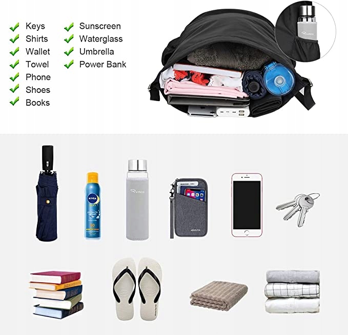 Подходит для многих занятия, включая физкультуру, плавание, прогулки, однодневные поездки, кемпинг, спортивные упражнения, ночевки, отдых, путешествия, йогу, бег, шопинг, школу и т. д.