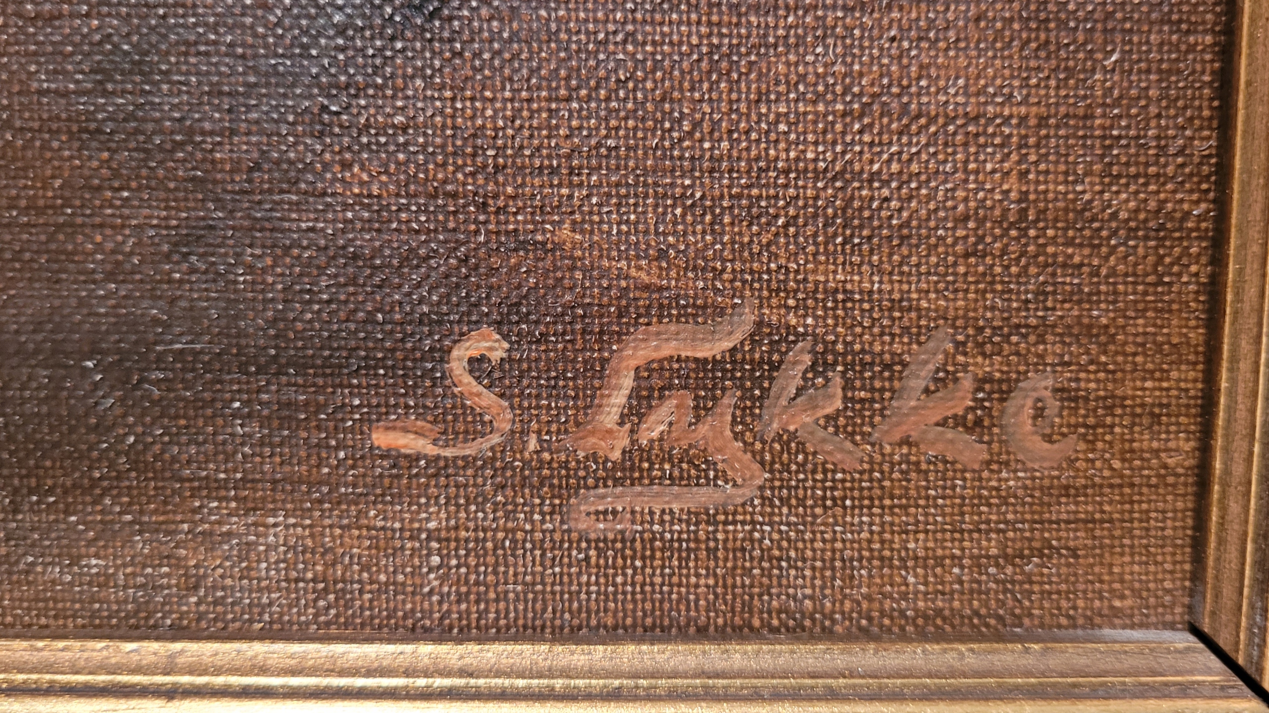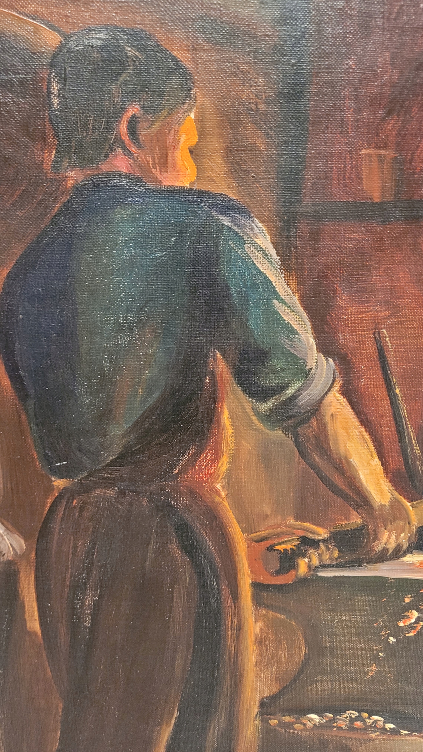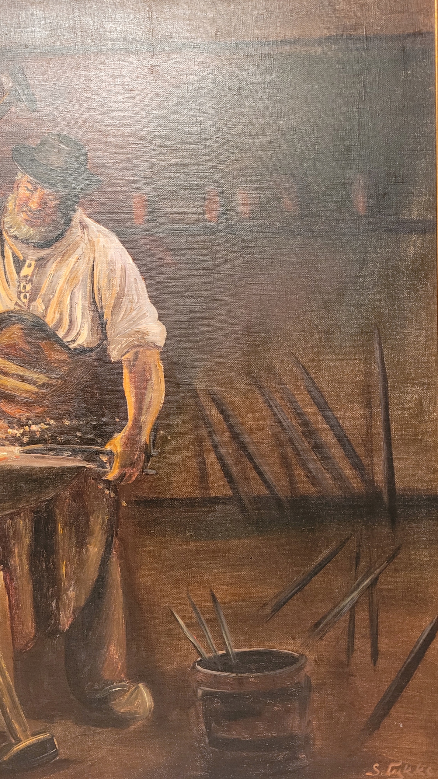 S.Lyyke - «Сцена в Кузнии», старая нефтяная картина.