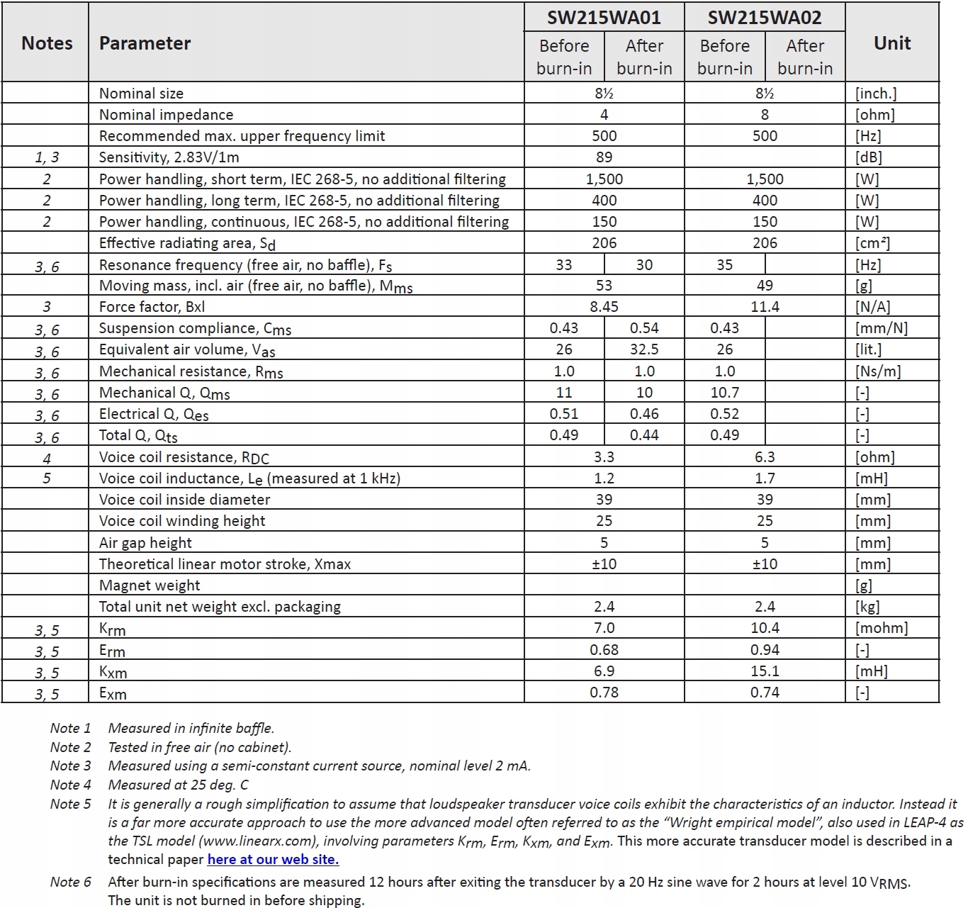 SW215WA02 был разработан для высококачественных сабвуферов, где качество звука и низкий уровень искажений являются приоритетом.