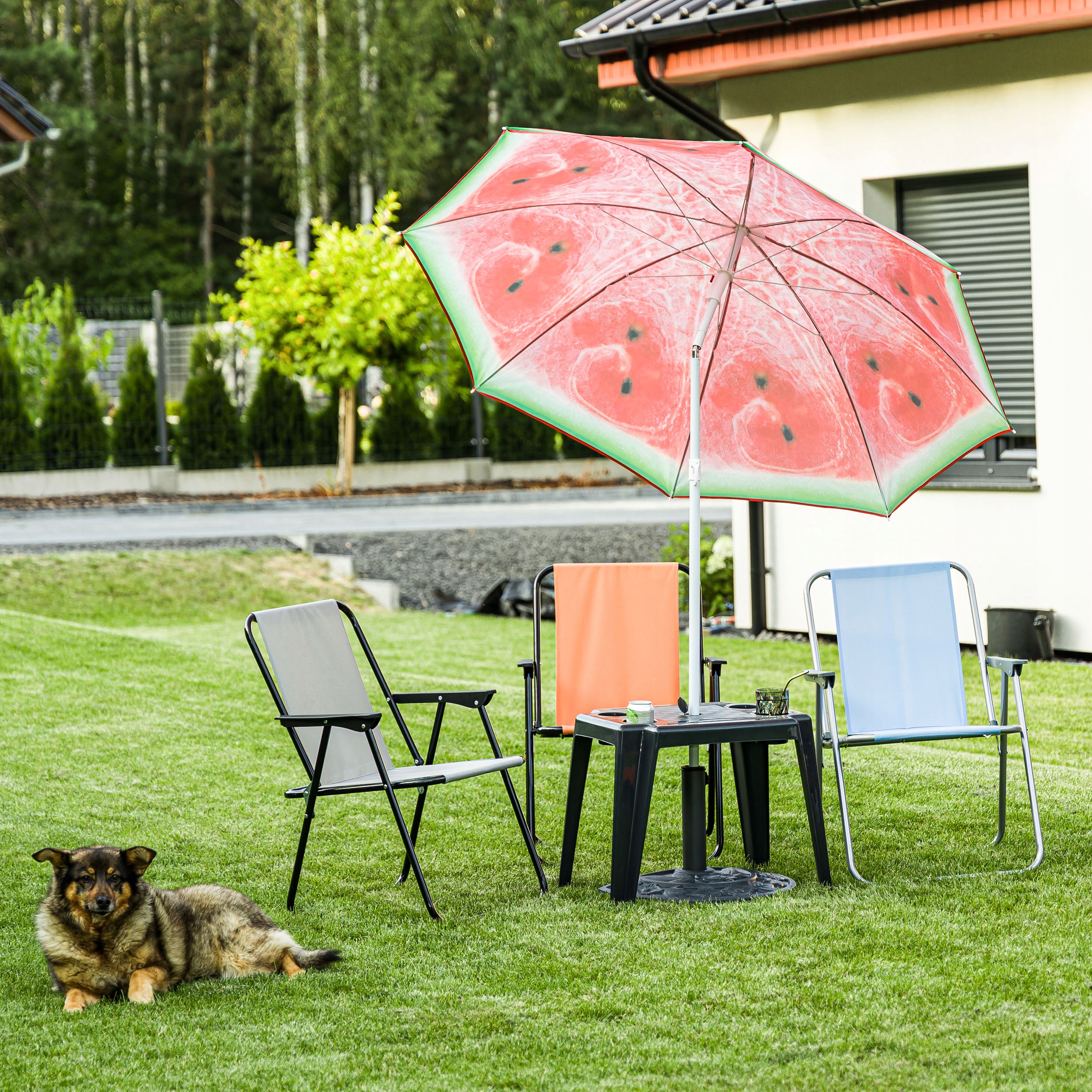 Дополнительным преимуществом является то, что зонт имеет функцию «ломания», что означает, что его можно свободно расположить по направлению к солнцу. Максимальная высота зонта 190 см.