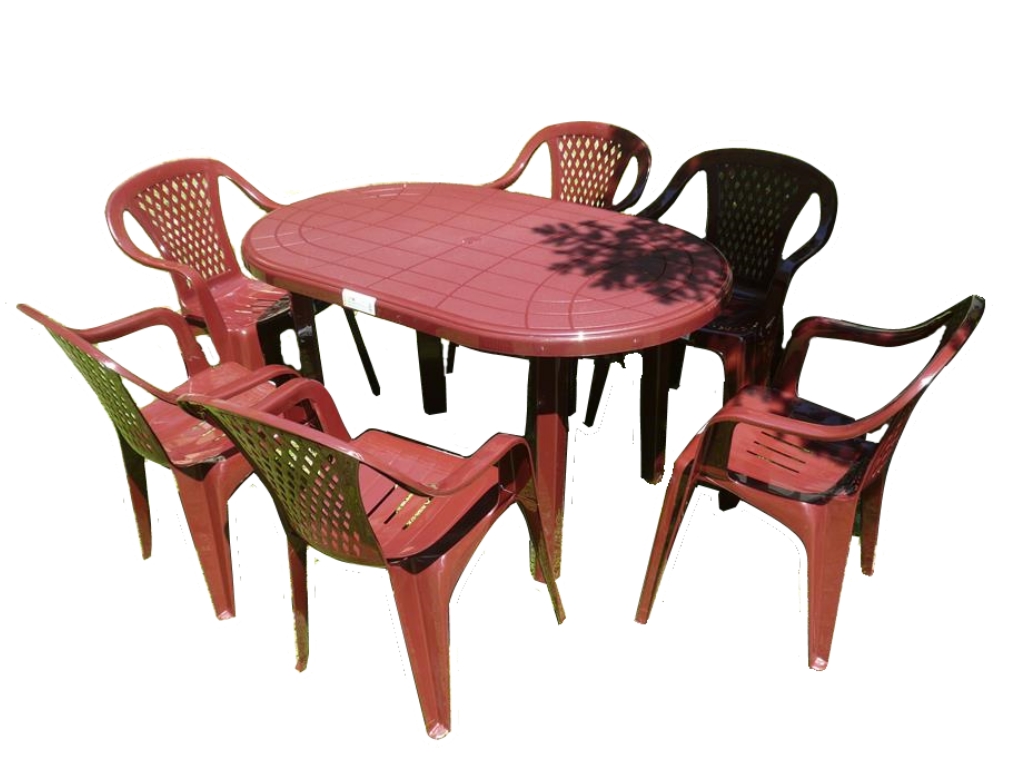 -изготовлен из прочного пластика, прочный и долговечный-очень легко собирается-столик имеет посередине отверстие для зонта и в комплекте две крышки (белая и бордовая)