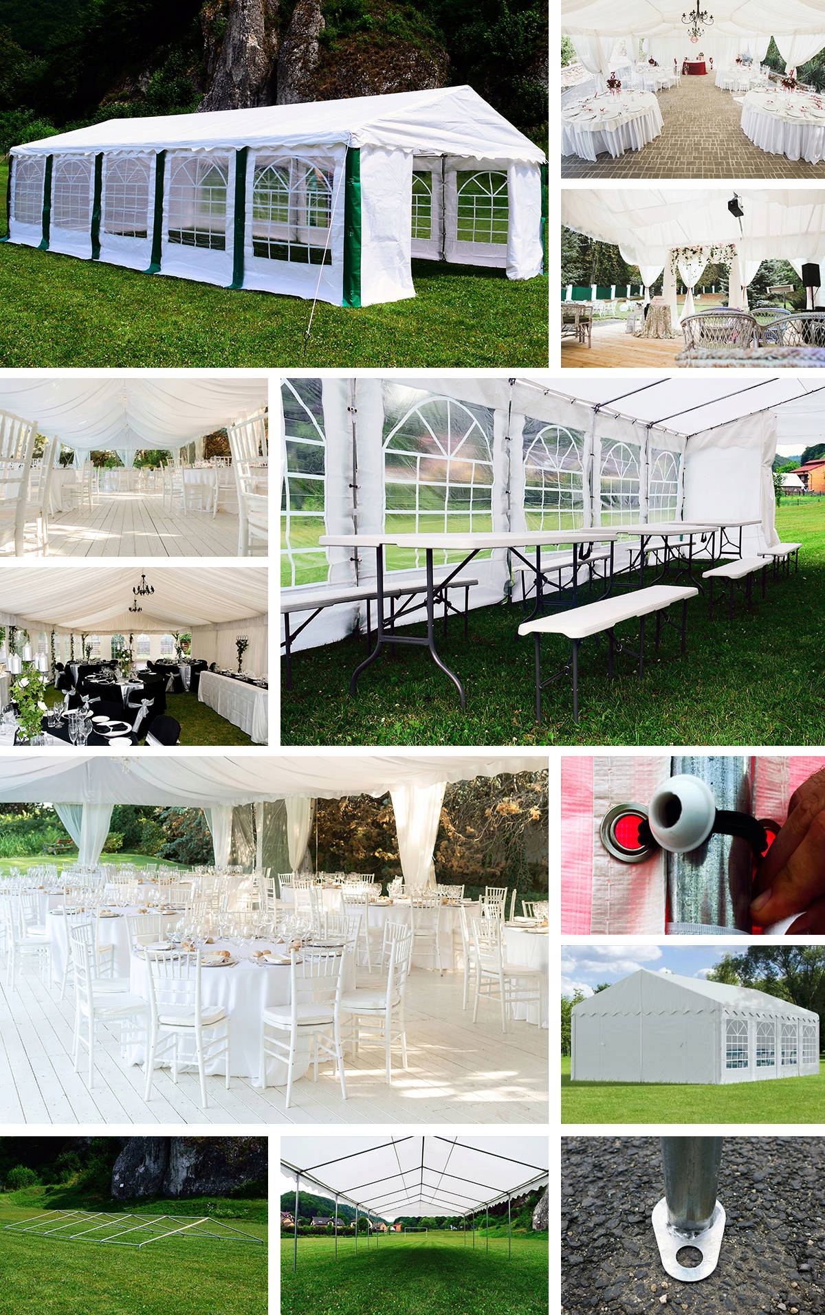 Чехол идеально подойдет для организации любого выездного мероприятия, банкета или праздника. Это идеальная защита для кейтерингов и приглашенных гостей во время свадеб, причастий, пикников и других праздничных мероприятий. Его также можно использовать как беседку, садовую палатку или палатку для террасы. Палатку также можно использовать как торговое помещение и дополнительное помещение в вашем помещении.