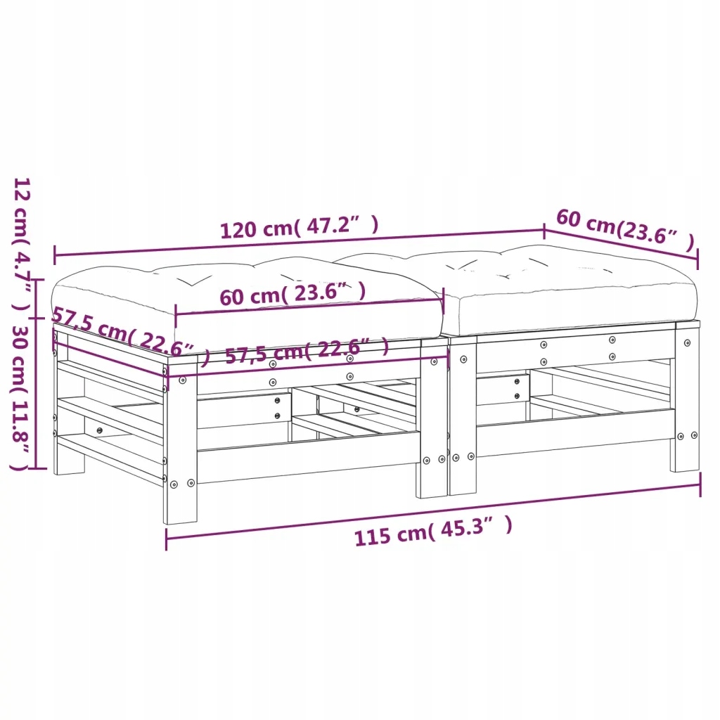 Садові підніжки з дугласії з подушками, 57,5х57,5х30 см, сірі