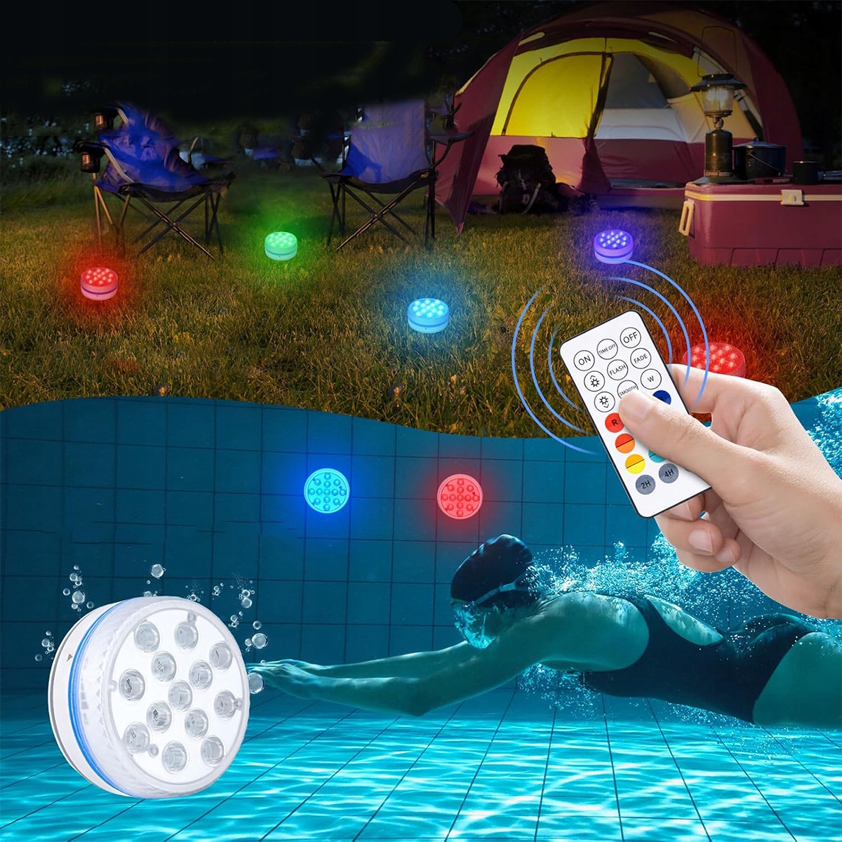 Набор из 4 огней бассейна RGB с 13 светодиодами, IP68, 7 см, магнитный, с 2 пилотами h1>