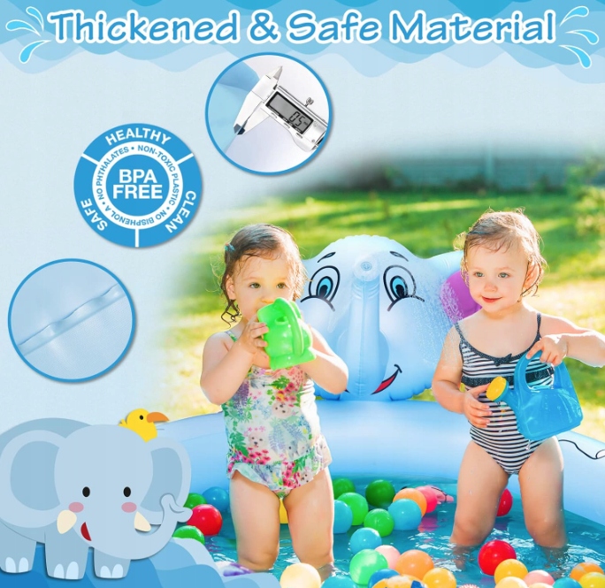 decorlife Дети надувные надувные бассейны с улучшенным подносом 3 в 1, долговечная и забавная летняя игрушка для использования в комнатах снаружи, узор слона