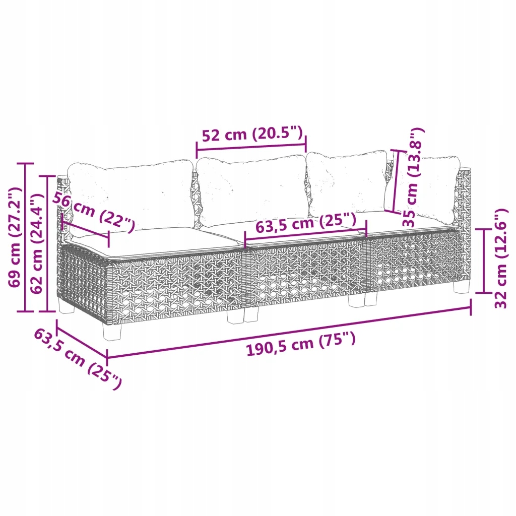 Садовый диван 3-местный роттан PE Grey 190,5x63,5x62 см h1>