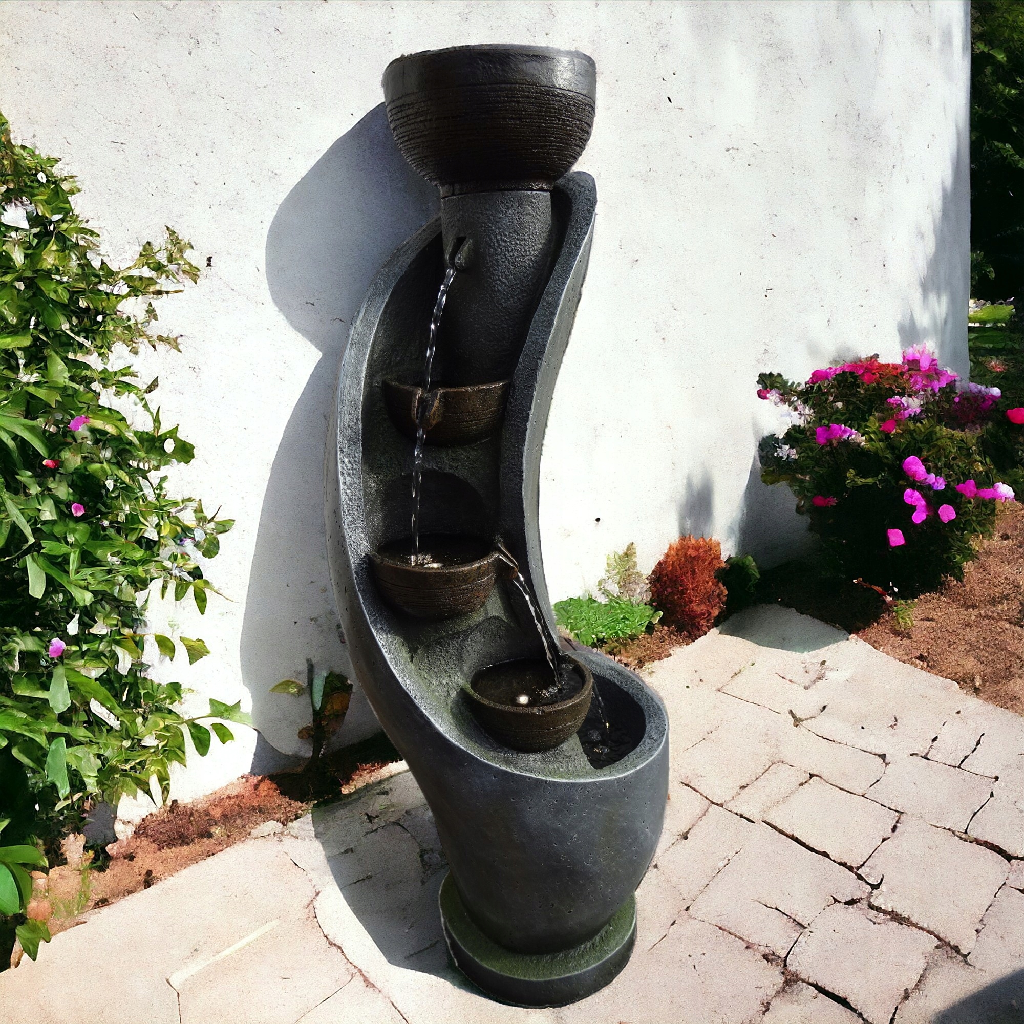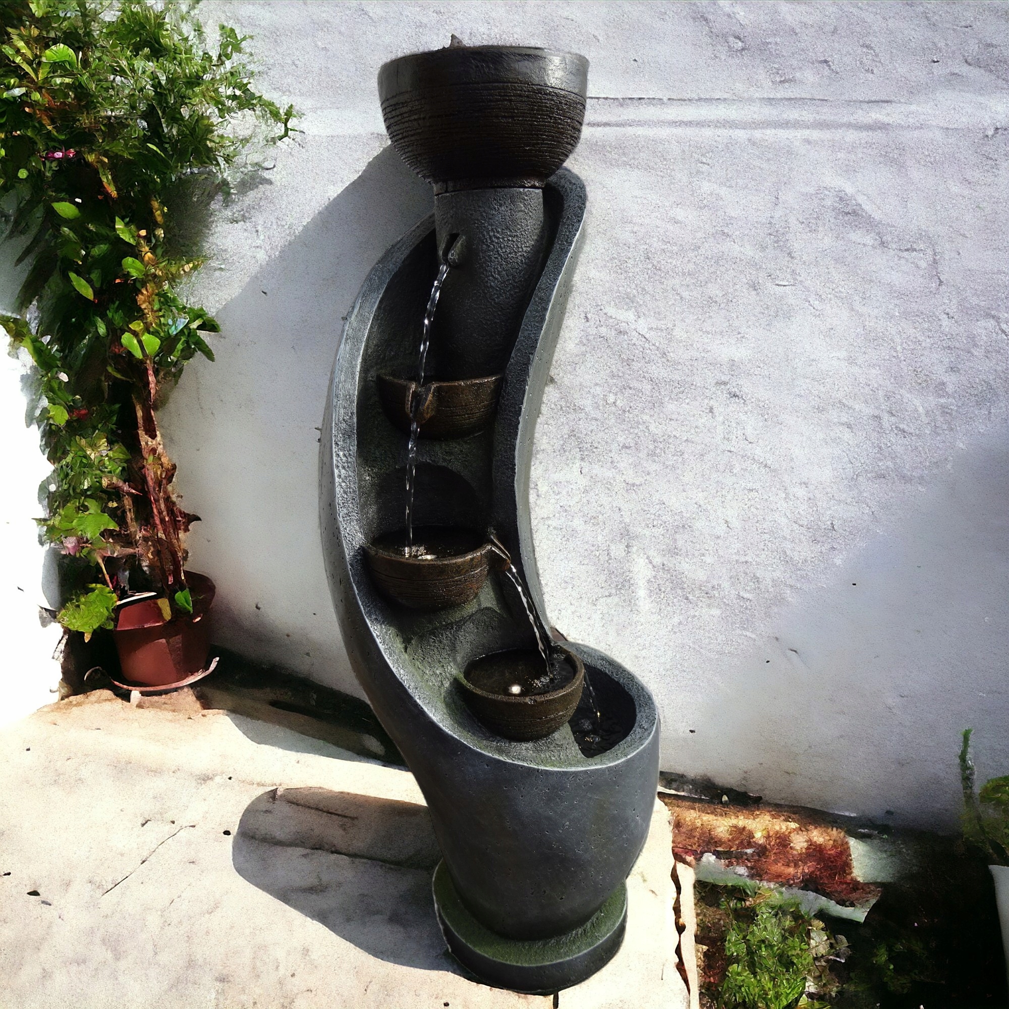 Фонтан закрытого типа, вода из нижнего резервуара перекачивается в верхний резервуар, откуда каскадом стекает вниз - под действием силы тяжести...... здесь этого не слышно , но это приятный и приятный опыт, который закрывает глаза - вы можете почувствовать ощущение присутствия рядом с естественным потоком