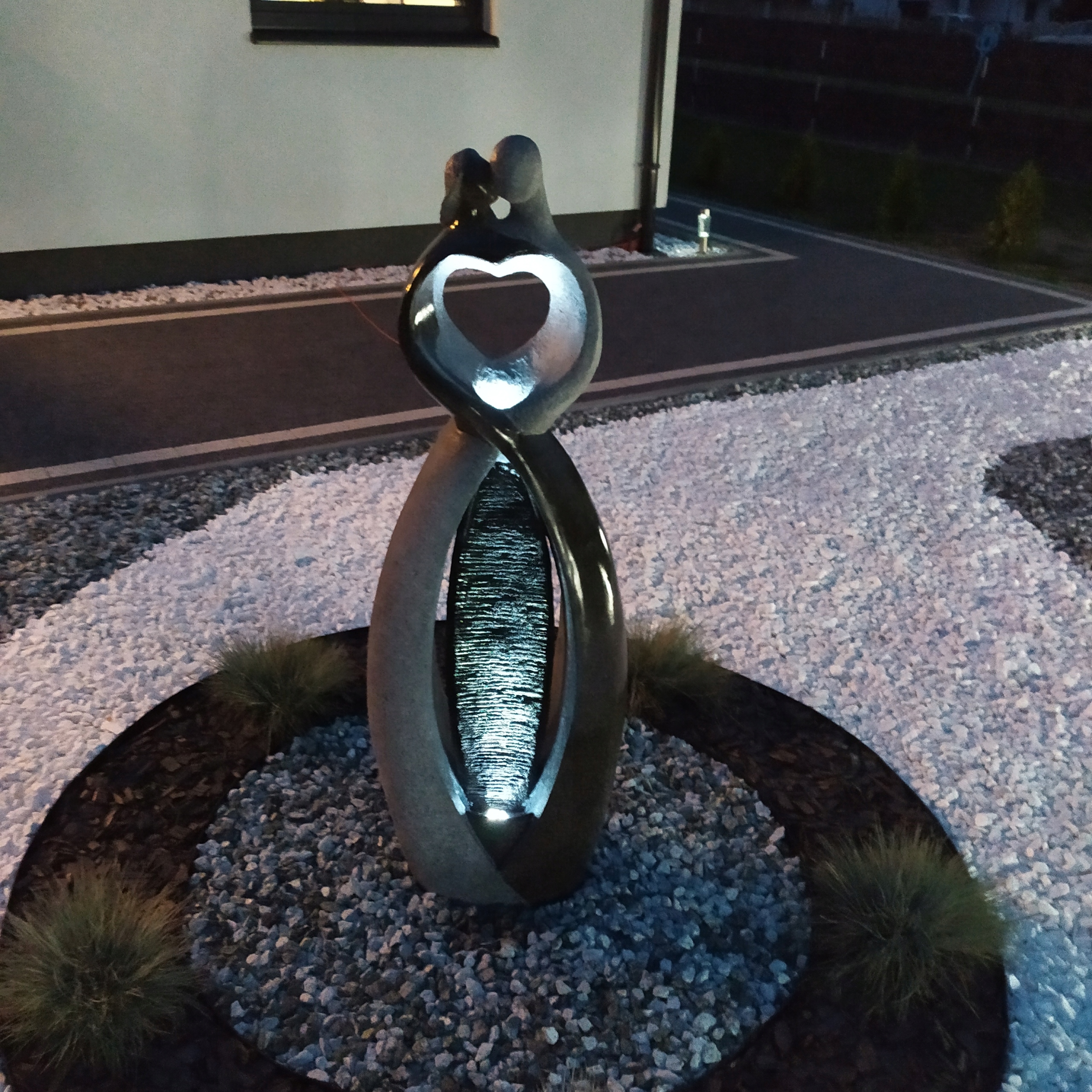Необычный фонтан представляет пару в характерном объятии, создающем сердце. Вручную -моделируемая и окрашенная с вниманием к деталям удовлетворит ваши требования. Он будет изготовлен из эпоксидной смолы высочайшего качества, обогащенной кварцами и мраморной мукой, она идеально подражает гранитному импульсу.