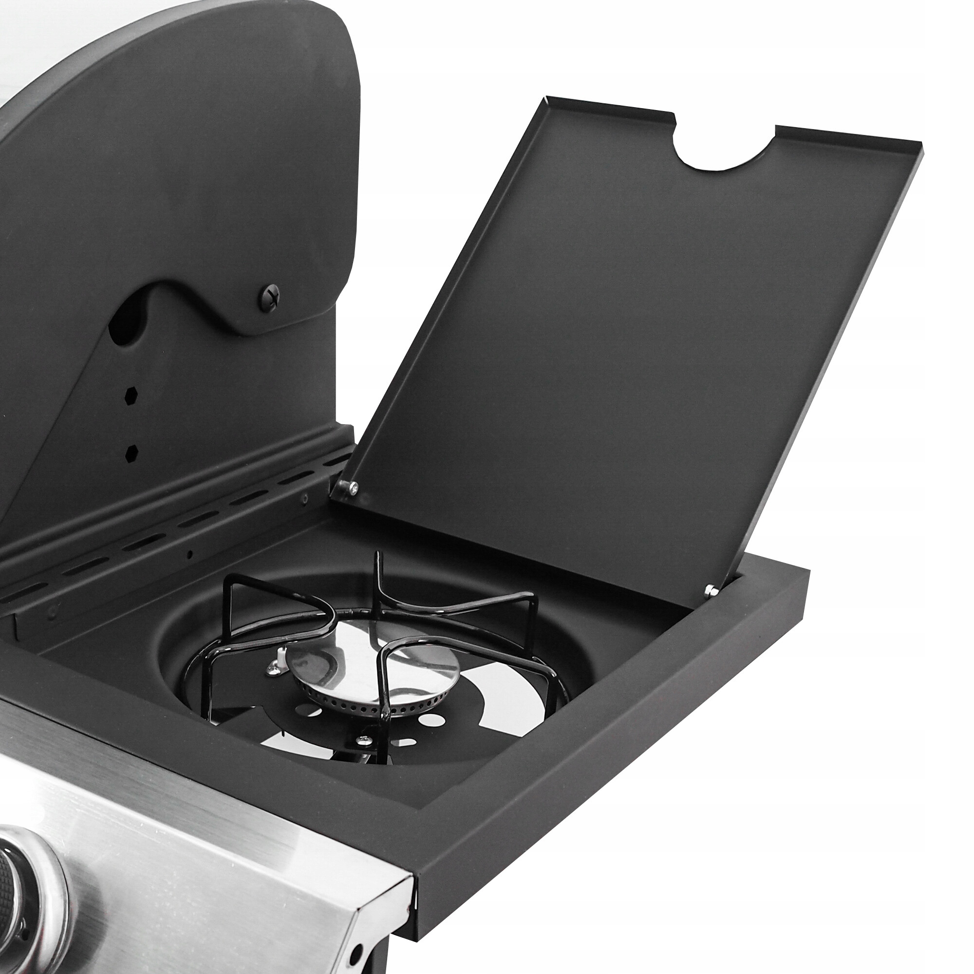 Гриль также оснащен встроенной боковой конфоркой, которая интегрирована со столешницей, поэтому вы можете удобно готовить любимые соусы или дополнительные блюда одновременно с приготовлением на гриле. Практичная, запирающаяся крышка боковой конфорки позволяет в закрытом состоянии использовать ее как рабочую поверхность или поверхность для хранения.