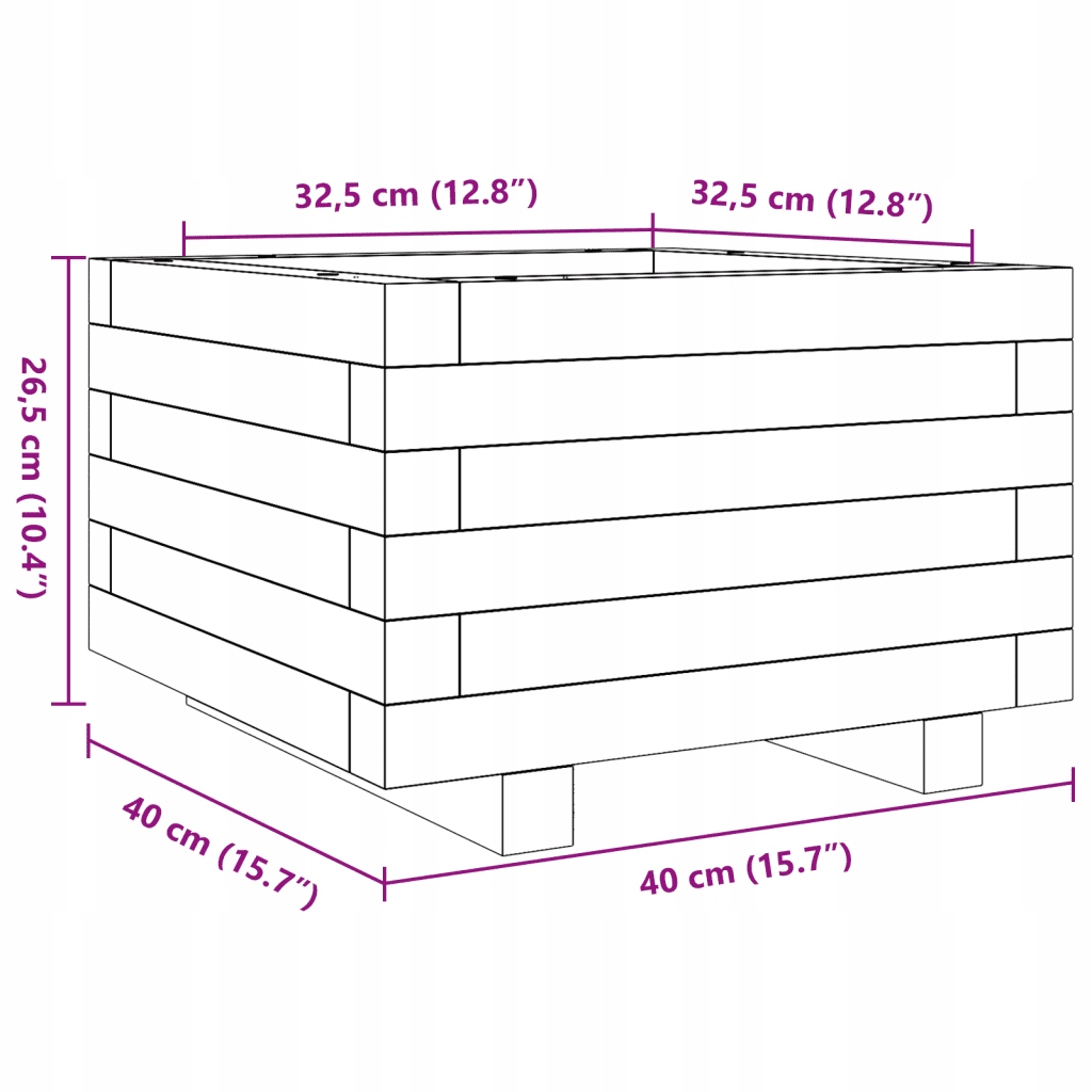 Садовый горшок, белый, 40x40x26,5 см, сплошная сосна древесина