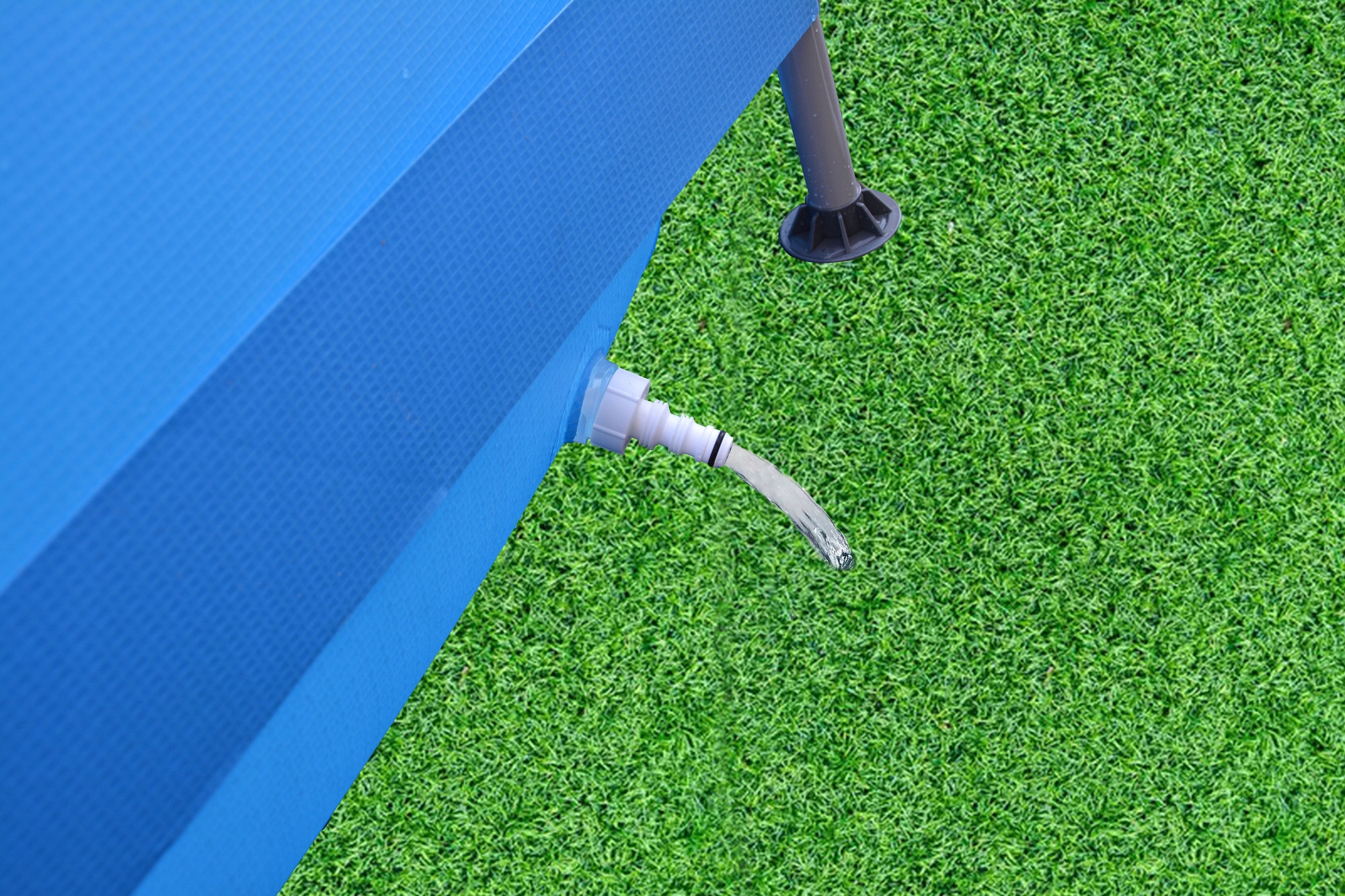 В комплект также входит боковой клапан, позволяющий подключить садовый шланг, что облегчает наполнение и слив воды из бассейна.