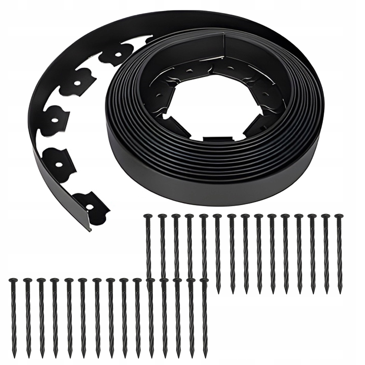 Сад края 20 м x 5 см черной гибкий пластиковый газон + якоря