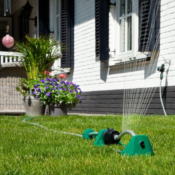 Наслаждайтесь красивым и пышным садом все лето с помощью этого разбрызгивателя от VONROC. Осциллирующий разбрызгиватель автоматически и равномерно поливает сад, не образуя луж. Решите, хотите ли вы поливать только одну или обе стороны газона. Разбрызгиватель можно регулировать: влево, вправо или влево и вправо.