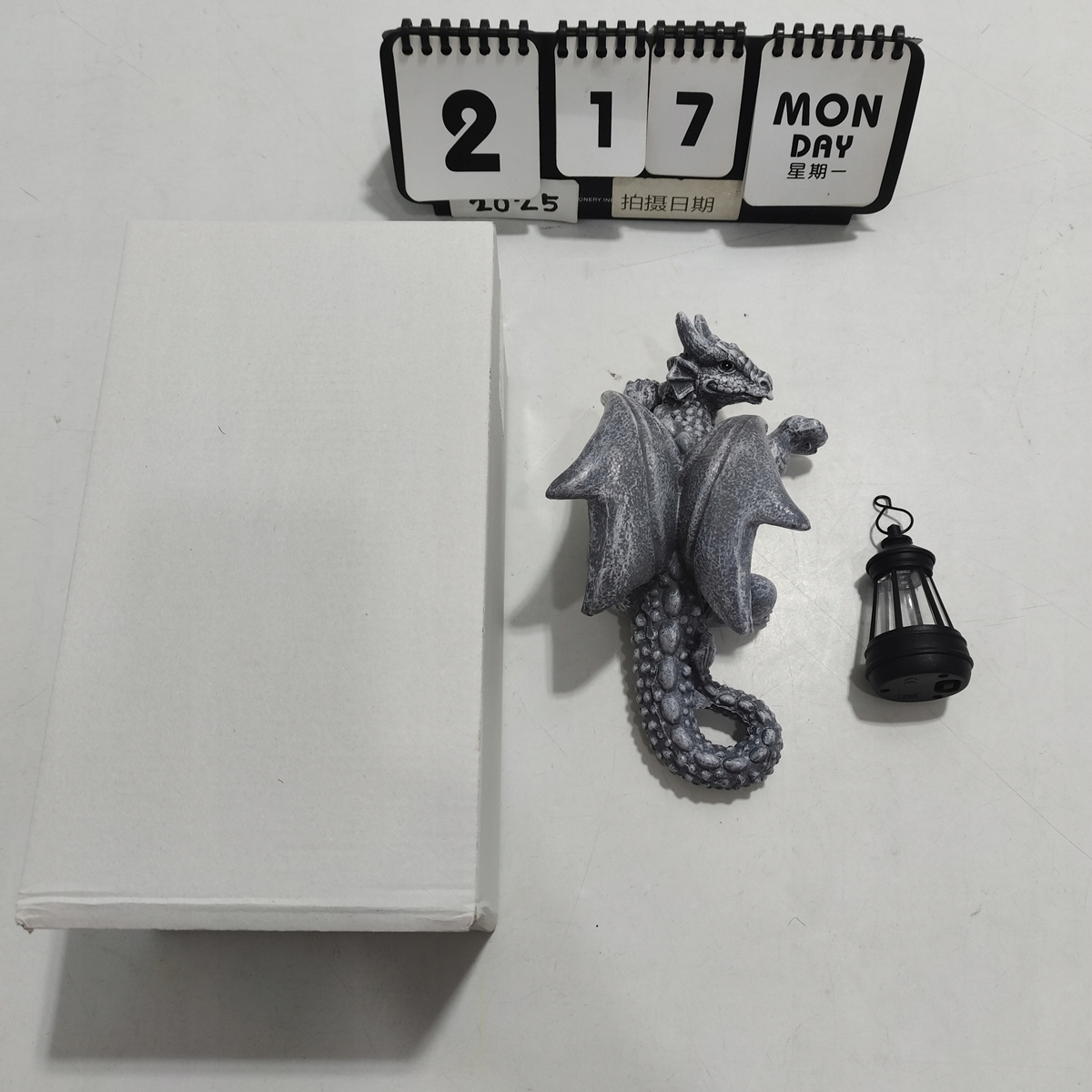 Состояние дракона держит солнечную лампу в руке. В течение дня он собирает энергию от солнечного света и излучает мягкий и капризный свет ночью, волшебным освещает сад.