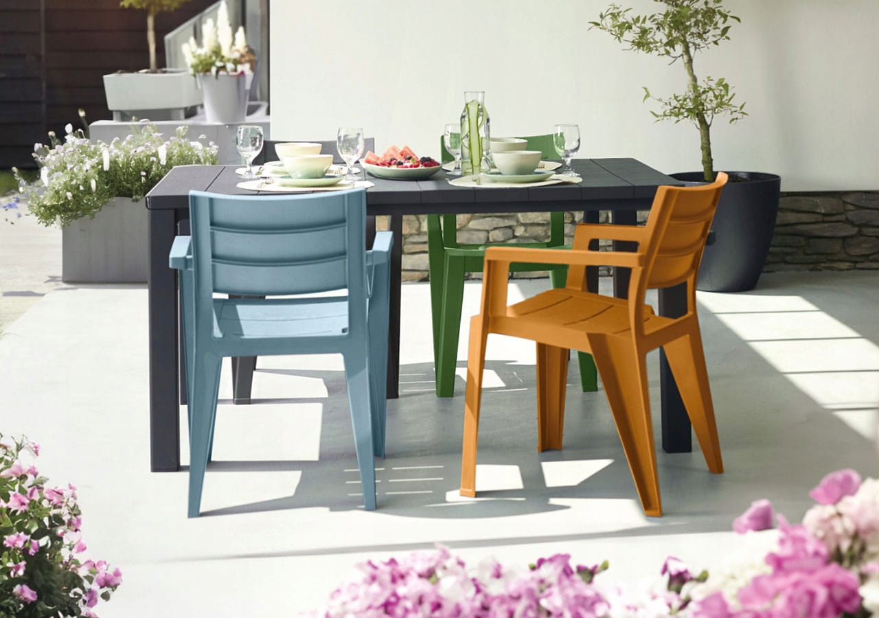 создал 100% от высококачественного полипропилена, стул устойчив к дождю, ультрафиолетовым излучениям и изменениям температуры (от 0 ° C до 40 ° C). Вам не нужно беспокоиться о выцветании цвета или трещин - Джули будет держать его внешний вид на протяжении многих сезонов!