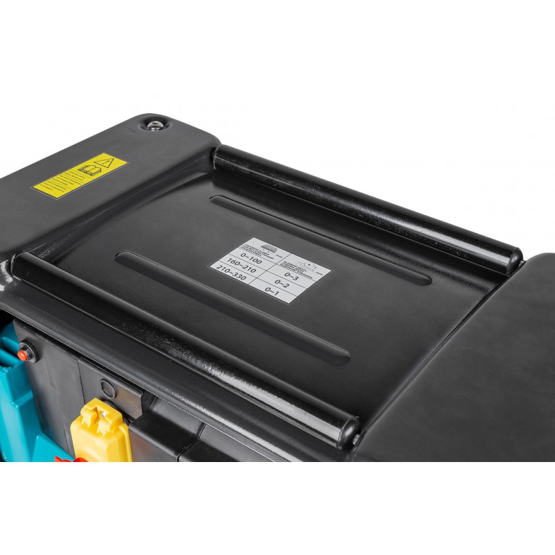 На передней панели рубанка расположены герметично защищенный выключатель и аварийный выключатель, позволяющие безопасно работать с устройством.