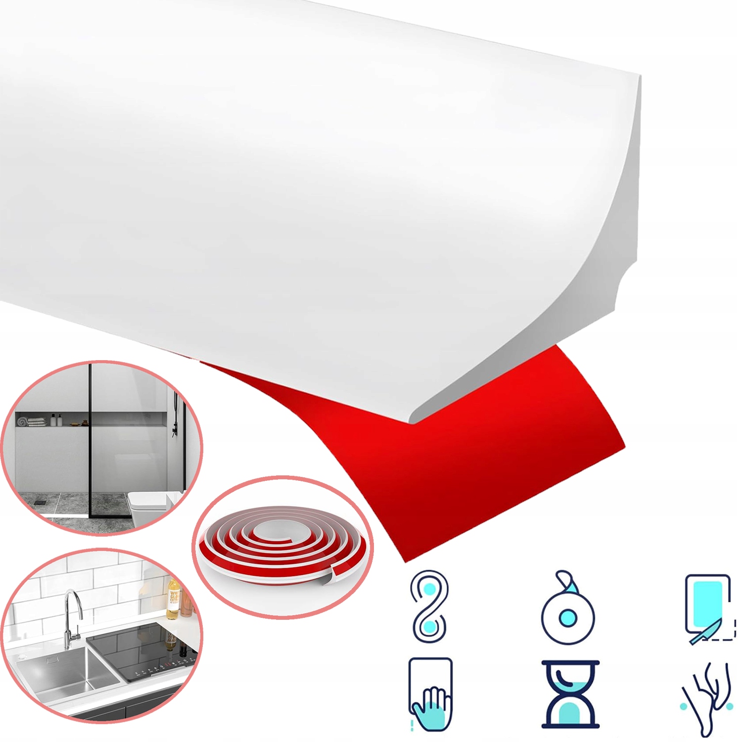 - Легко установить: сначала очистите и высушите поверхность столешницы (или пола), измеряйте и порежьте душевую дорожку на длине, отчитывайте красный самоклеящий ремень сзади, придерживайтесь гладкой поверхности (зимой вы можете использовать фен для нагрева, чтобы получить лучшую вязкость). душевые, душевые лотки, кухонные раковины, у двери ванной, края ванны, вокруг стиральных машин или туалетов, чтобы создать водяной барьер, эффективно останавливая поток воды и обеспечивая отделение влаги от влаги, защищая дом от влаги. Благодаря блюдам: