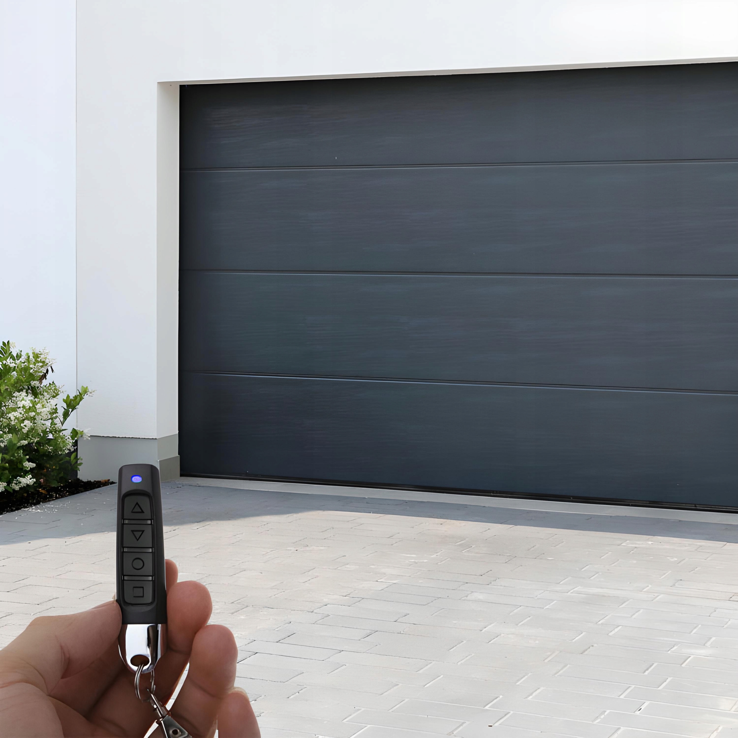 Дистанционное управление имеет четыре кнопки управления (квадрат, колесо и стрелка вниз и вверх) благодаря, на что вы откроете/закроете свои ворота и многое другое! Кнопки используются для калибровки пульта дистанционного управления со старым пультом дистанционного управления и передачи кода. Пульт дистанционного управления небольшой (68 × 16,3 × 14,9 мм) поместится практически в каждом кармане или кошельке. У есть карабинер, который позволит вам прикрепить его, например, ключи или петли штанов.