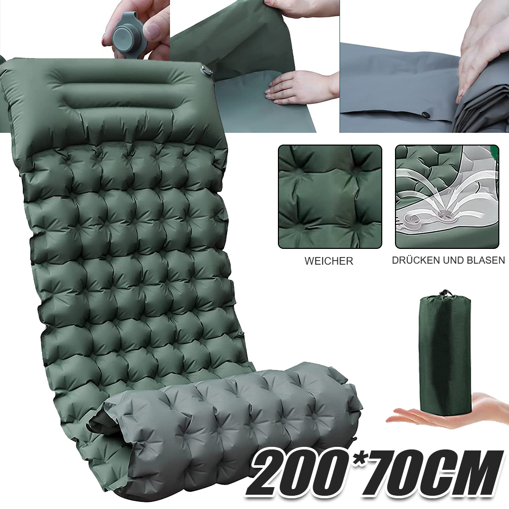 - Походный коврик портативный и легкий (всего 0,83 кг). Его легко хранить, он помещается в боковой карман дорожного рюкзака. Спальный коврик имеет защелкивающуюся застежку со стороны кемпинга и его можно свободно комбинировать с той же надувной подушкой, чтобы повысить практичность на открытом воздухе. Вы можете использовать его для кемпинга, пеших прогулок, пляжа и т. д. Крепко выспитесь, куда бы вы ни пошли