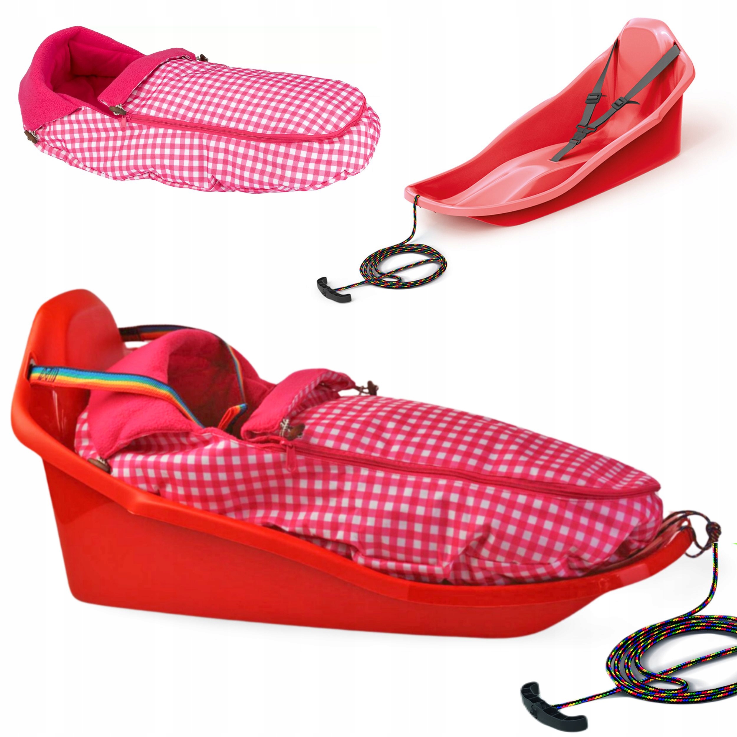 Сани TOPO со спинкой + спальный мешок - Красный