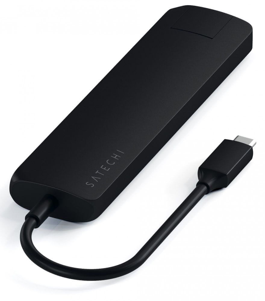 Satechi Slim Мультипорт изготовлен из высококачественного алюминия, что делает его не только легким, но и устойчивым к механическим повреждениям и долговечным в использовании.