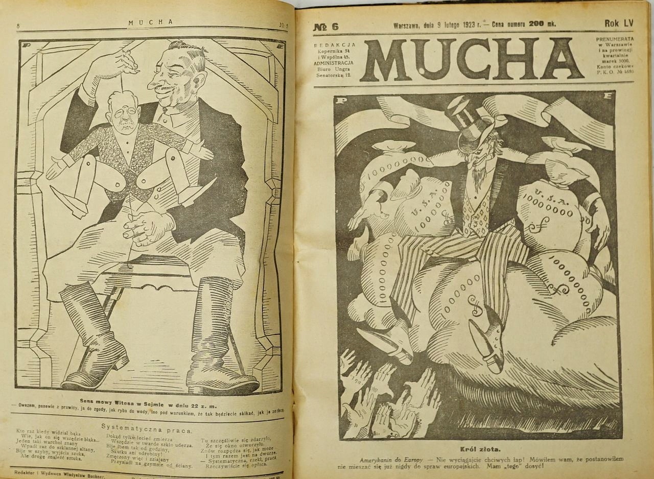 Переплет двухгодичный «Муха», формат 30 х 22 см. Множество иллюстраций, отсылок к текущей политической ситуации (убийство президента Нарутовича). В ежегоднике 1922 года есть номера 1–52 (две отсутствуют: 9 и 16), а в ежегоднике 1923 года — номера 1–51 (два отсутствуют: 31 и 25). . Общее состояние хорошее, учитывая возраст (несколько карточек потерялись, незначительное изменение цвета из-за возраста). Твердый переплет