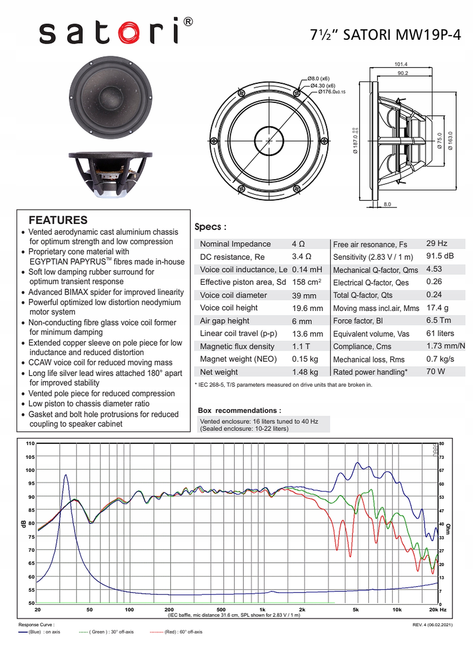 SB Acoustics 7.5″ SATORI MW19P-4 / Середньочастотний динамік з паперу