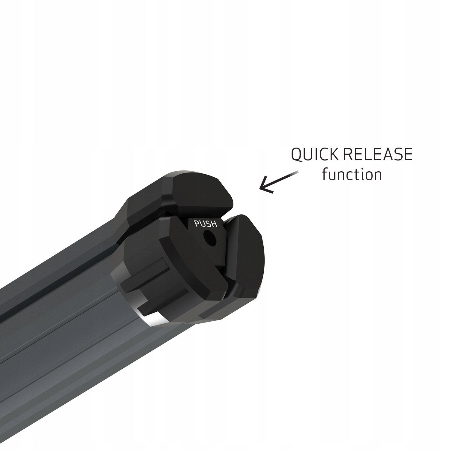 Благодаря чрезвычайно компактной конструкции и весу 2,1 кг штатив легко и удобно переносить и устанавливать при необходимости. Оснащен функцией QUICK RELEASE и изготовлен из алюминия, окрашенного в черный цвет. Штатив очень прочный, его можно использовать как в помещении, так и на улице.