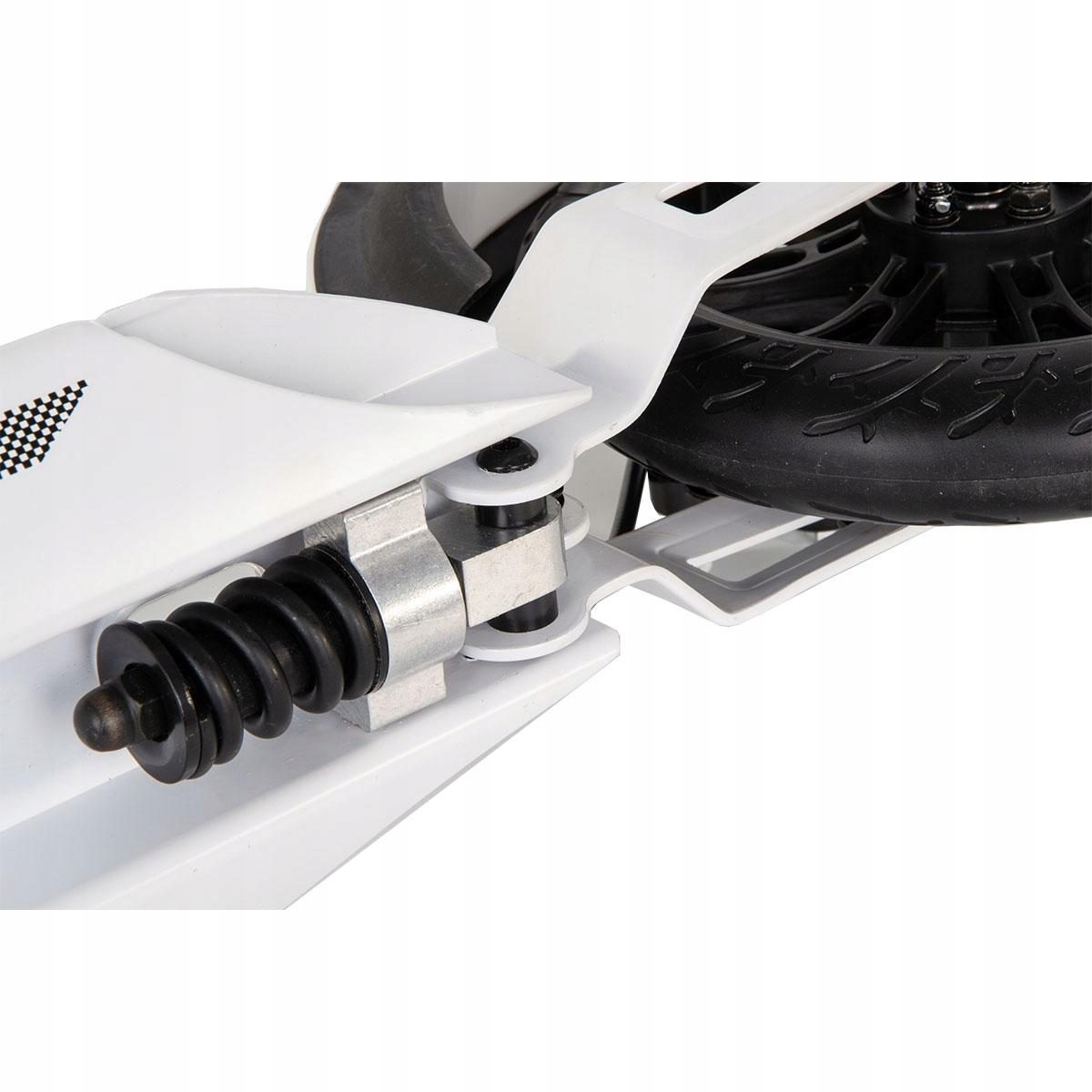 Скутер имеет задний амортизатор, который эффективно уменьшает удары и вибрации во время движения на неровных поверхностях, таких как камни мощения или дороги с небольшими отверстиями. Благодаря этому пользователь чувствует более низкую нагрузку на запястья и коленях, что позволяет до более длительного и плавного вождения, а также увеличивает стабильность и контроль над скутером.