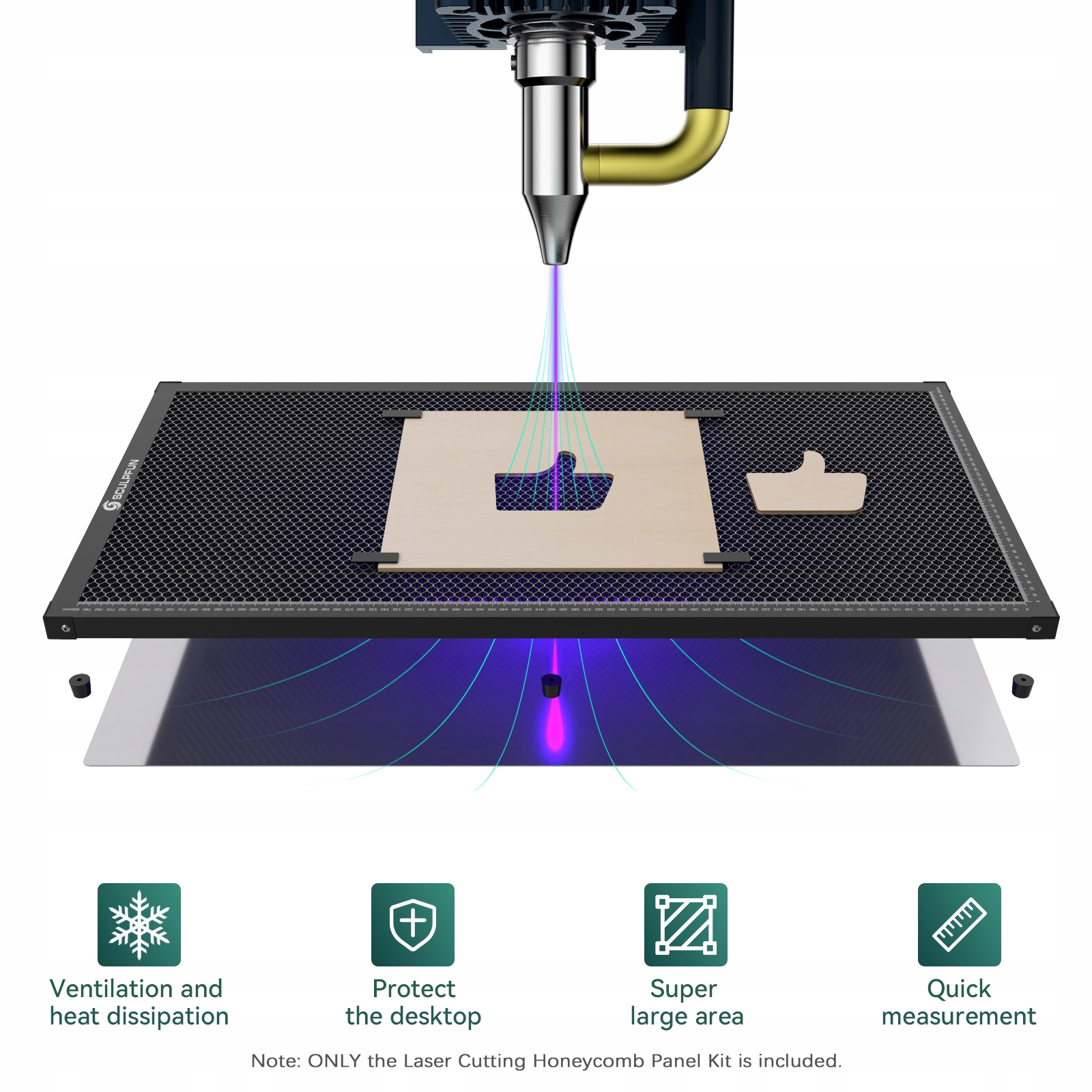 5? Защитная пластина с безопасным металлом: соты для Sculpfun. Панель оснащена стационарной металлической защитной пластиной, которая может защитить стол от повреждения лазера, который очень подходит для небольших диодных лазеров DIY.