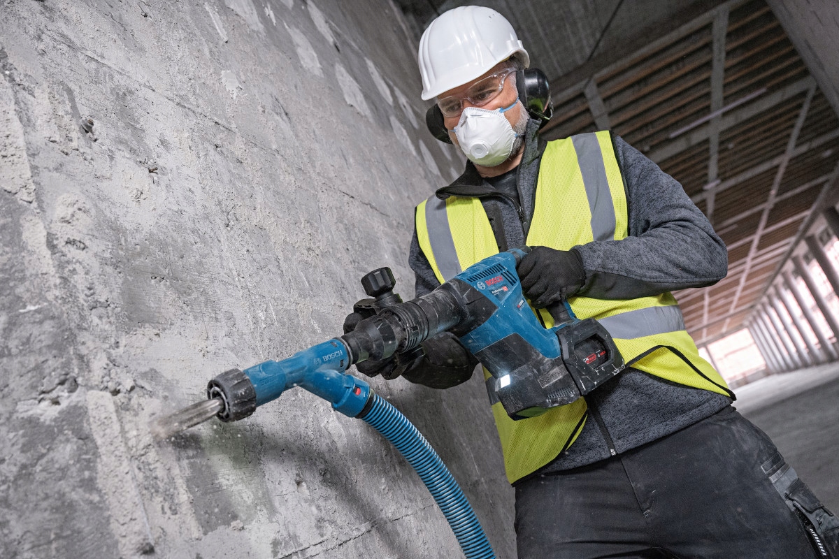 Система антивибрационной системы -специальная задняя ручка с системой демпфирования вибрации (патент Bosch) и специальная активная система вибрации механизма воздействия означает, что вибрации, передаваемые в сустав, были уменьшены более чем на 30%, что значительно влияет на комфортную и удобную работу без работы без каких -либо потребностей. позволяет установить зубило в 12 выбранных элементах, благодаря тому, что мы можем настроить настройку зубила в положение ковки.