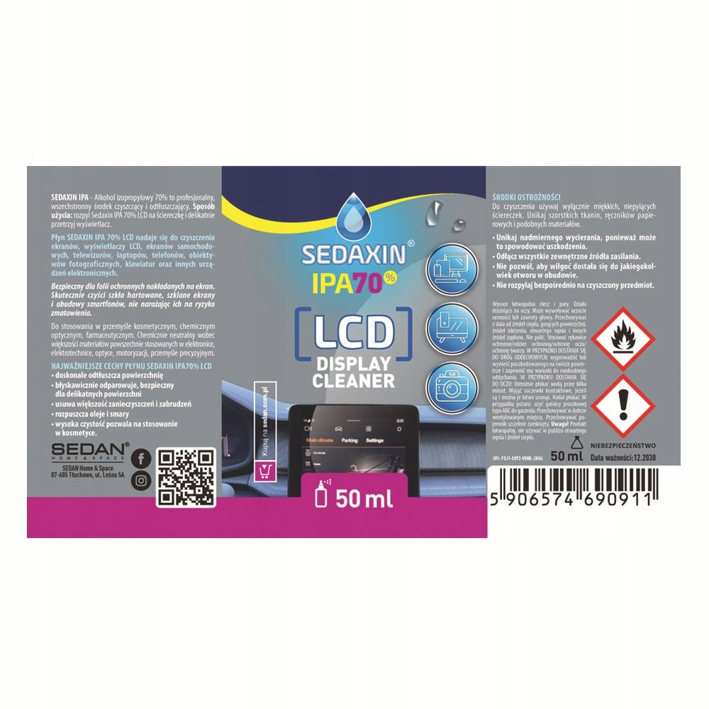 Sedaxin IPA 70% ЖК -дисплеи очиститель изопропилового изопропанола 50 мл
