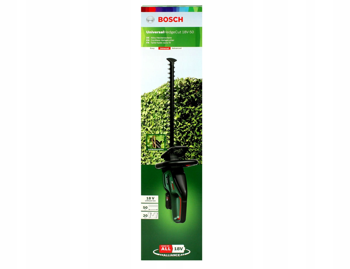 Эффективный аккумуляторный секатор BOSCH UniversalHedgeCut 18V-50, предназначенный для обрезки кустов и живой изгороди.