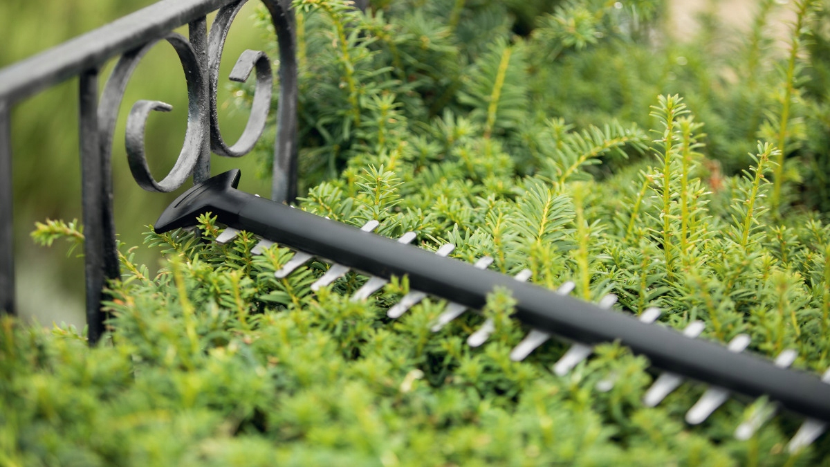 Эргономичный дизайн с мягкой основной ручкой и удобная дополнительная ручка обеспечивают оптимальный комфорт и удобство работы. Благодаря небольшому весу (около 2,6 кг) вы можете легко перемещать инструмент в любом положении, например, держа его над головой. Специальная защита кончиков режущих ножей позволяет резать вдоль стен или близко к земле. Эта защита предотвращает повреждение режущих лезвий, когда кусторез касается твердой поверхности.