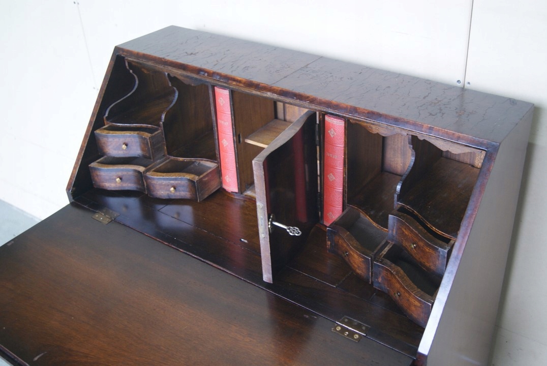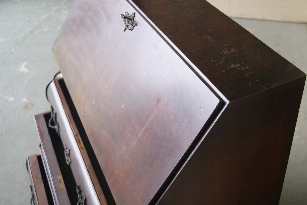 Состояние стола-секретаря видно на фотографиях, конструкция стабильная. Верхняя часть мебели треснута (все показано на фотографиях)