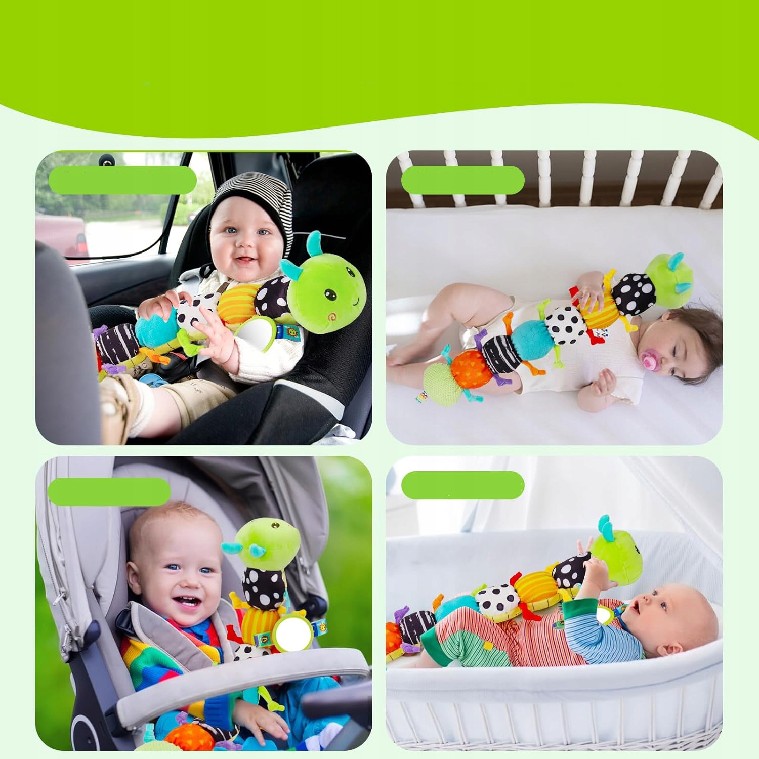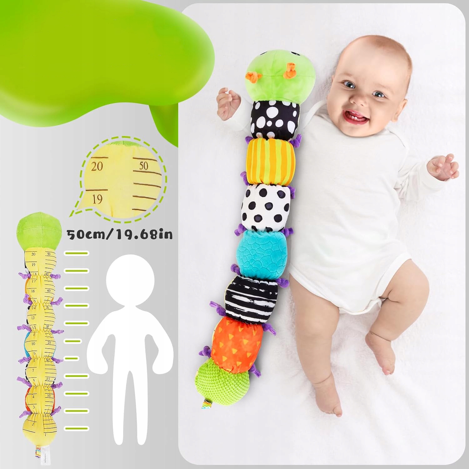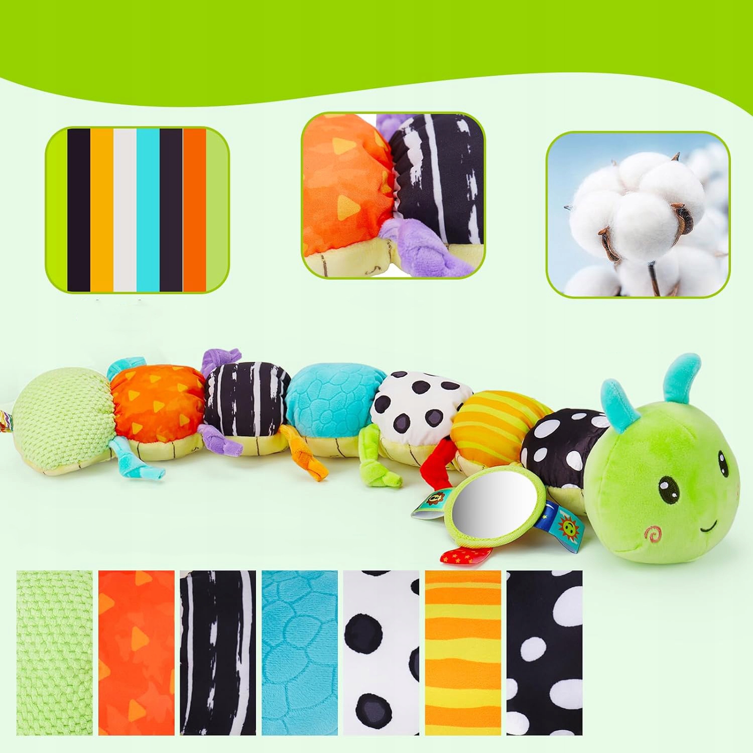 🐛 Яркие цвета игрушки и различные текстуры облегчают визуальное и касательное исследование.