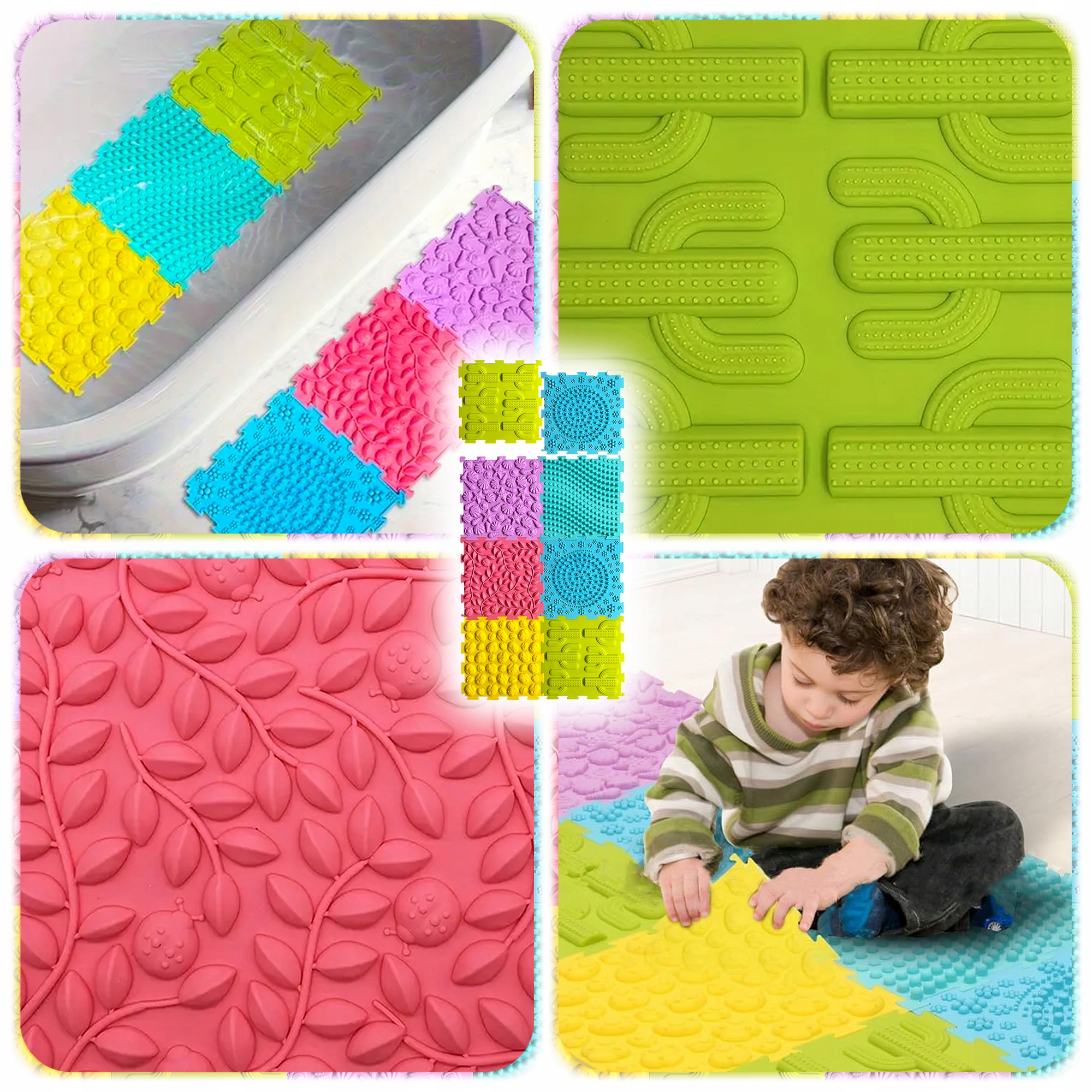 Регулярная ходьба по ортопедическим коврикам - отличный способ плоской профилактики, талию вальгуса или осанских проблем. Веселье становится естественной формой терапии - без принуждения, но с большой радостью. Коврики побуждают детей двигаться и босиком различные текстуры, которые положительно влияют на нервную и мышечную систему . Это также отличное решение для детей с сенсорными нарушениями интеграции.