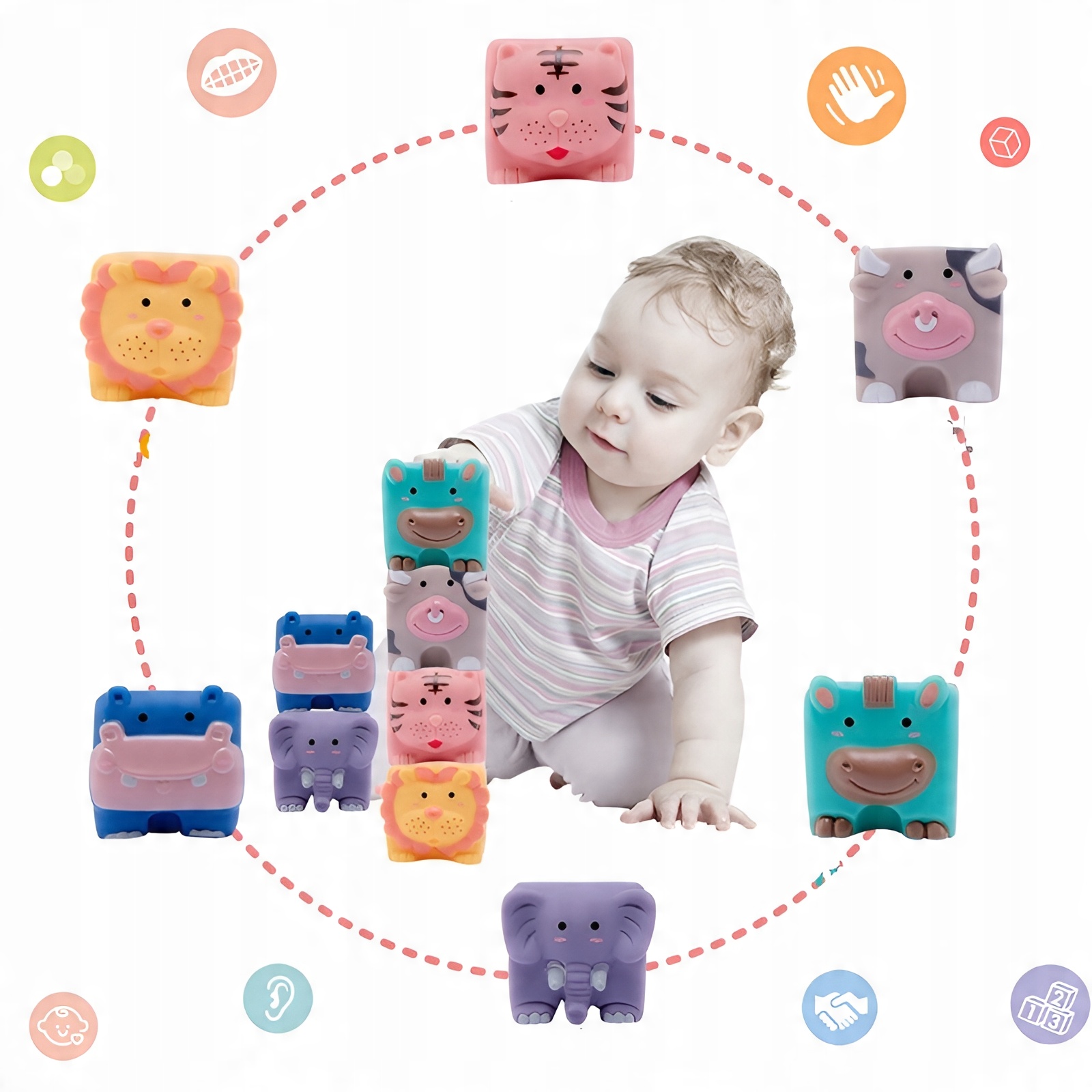 Сенсорные резиновые блоки кубические животные, фигурки мягких ванн