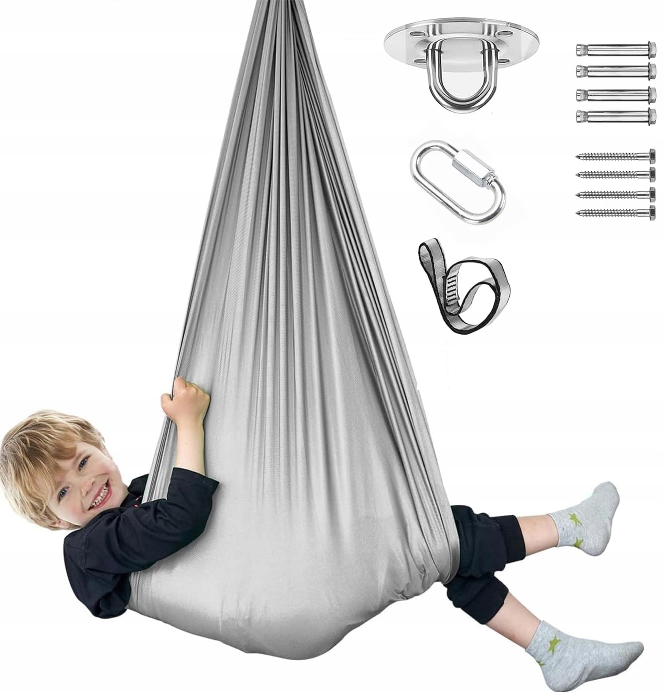 Детский гамак-хаутска состоит из 100% нейлона высокой плотности, благодаря которому он легкий и устойчивый к разрыву, а его грузоподъемность составляет до 90 кг (200 фунтов). Супер -мильц, эластичный со стороны и защищен от опрокидывания. Терапевтическое качели с тканью для качания в комнатах дает детям много возможностей играть на качелях, чтении, соли и вращении