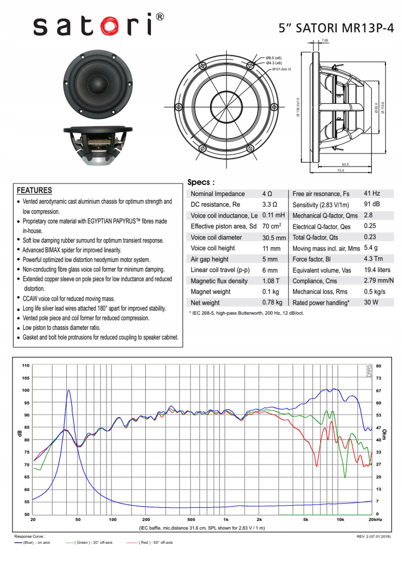 Середньовуфер SB Acoustics 5″ SATORI MR13P-4 / Paper 4 Ohm