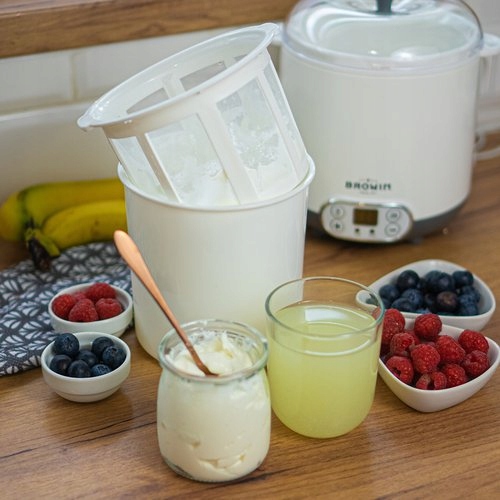 С помощью этого устройства вы сможете приготовить молочные йогурты (натуральные и греческие), веганские йогурты (например, из соевого молока), сыры и кефиры, не выходя из дома! Пропагандируя домашнюю обработку, вы можете готовить ее вместе со своими детьми — с этой йогуртницей приготовление йогуртов самостоятельно станет детской игрой. Благодаря возможности регулировки времени работы и температуры вы сможете запрограммировать аппарат согласно инструкции в используемом вами рецепте, а электронный дисплей позволит контролировать процесс созревания йогурта. Устройство чрезвычайно быстрое, надежное и имеет красивый дизайн. Цвета и дизайн позволяют ей идеально вписаться в интерьер любой кухни!